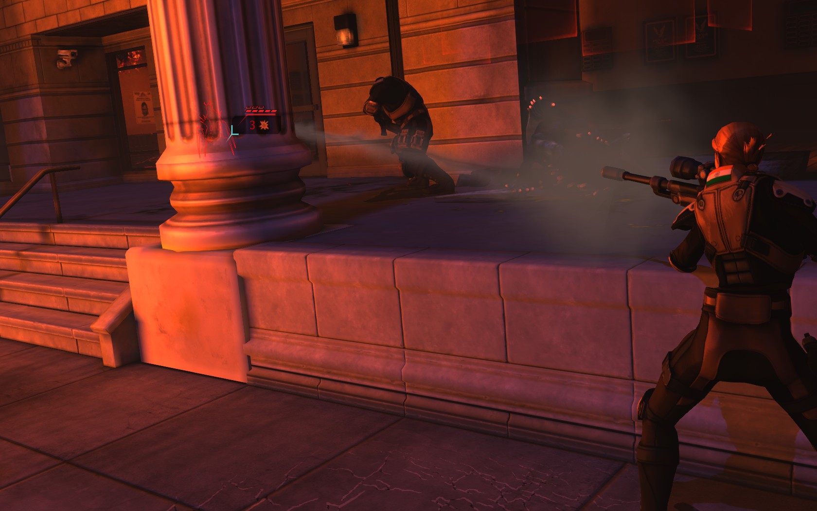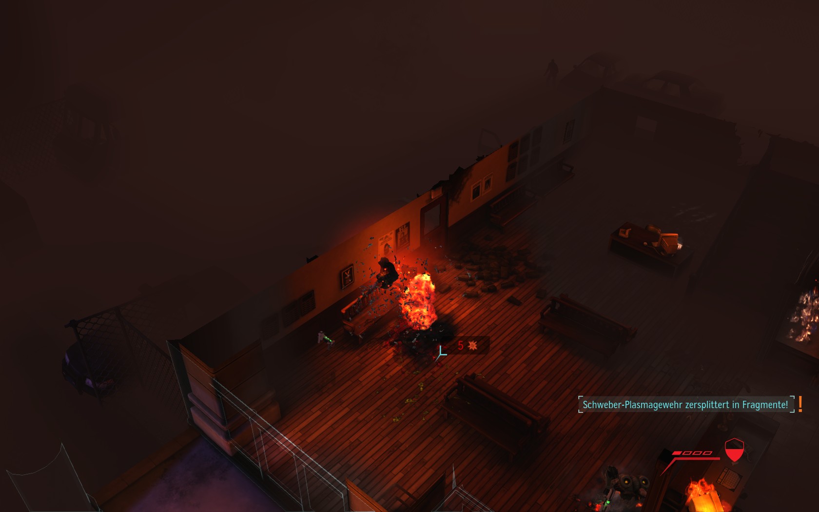 Slowcar kommt aus einer ganz anderen Ecke herbeigeeilt und kann nur noch auf den verletzten Schweber schießen: