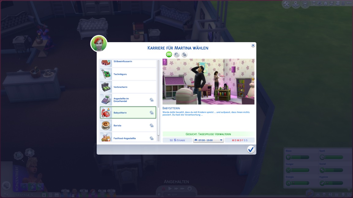 Tina entscheidet sich für eine Halbtagsstelle als Babysitterin.