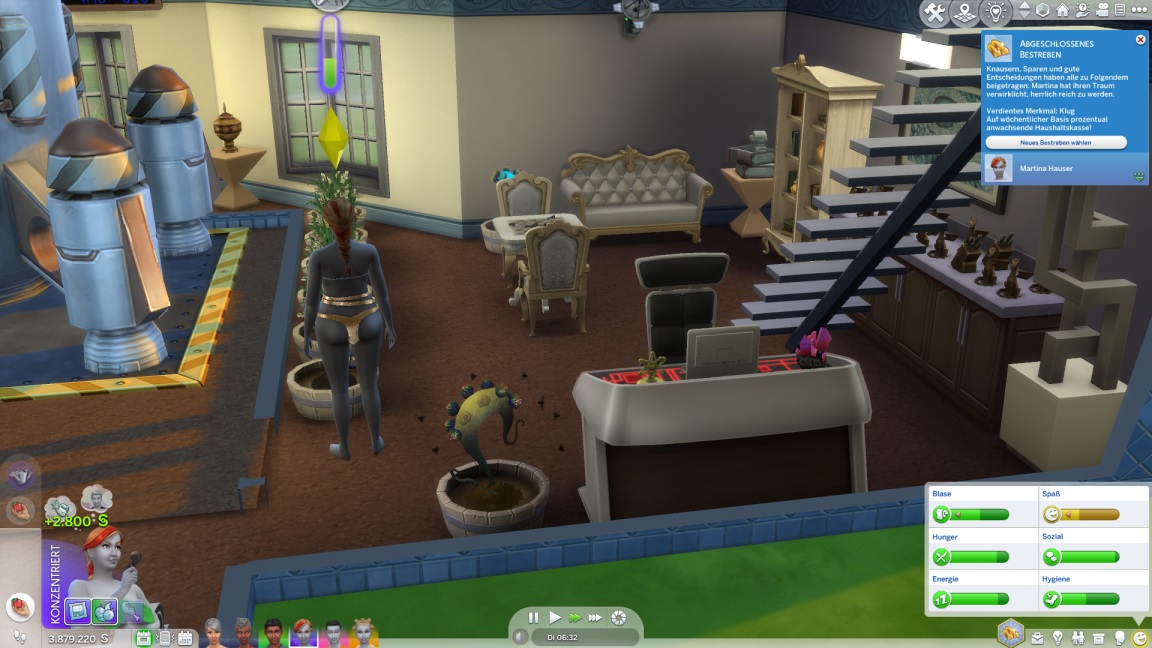 Badegewand. Hier ließ ich den Vorteil des Spiels unverändert.
