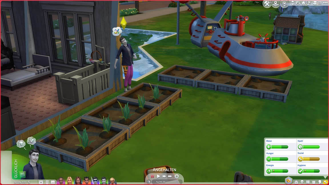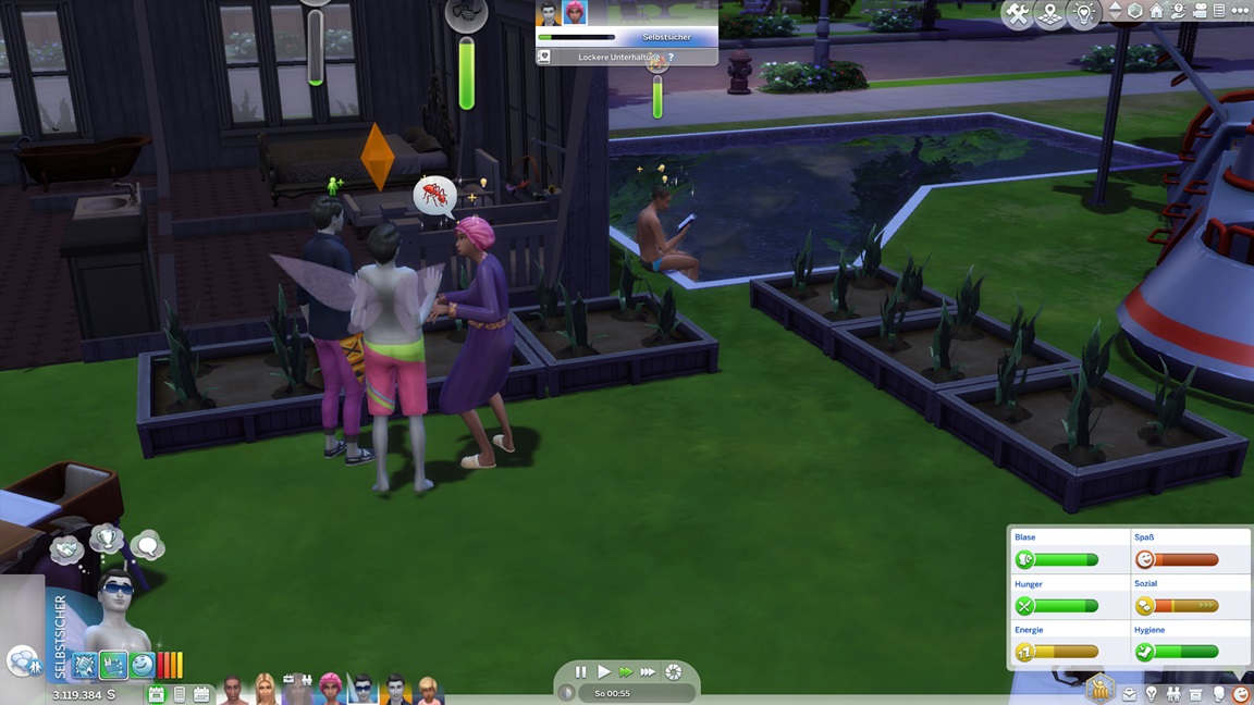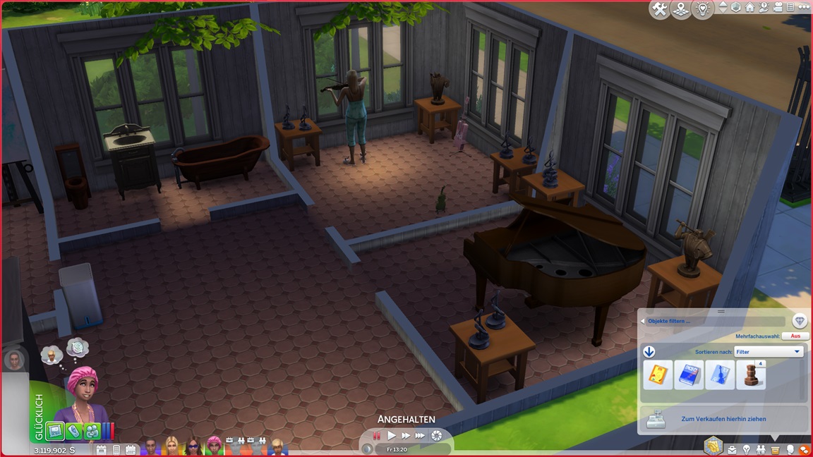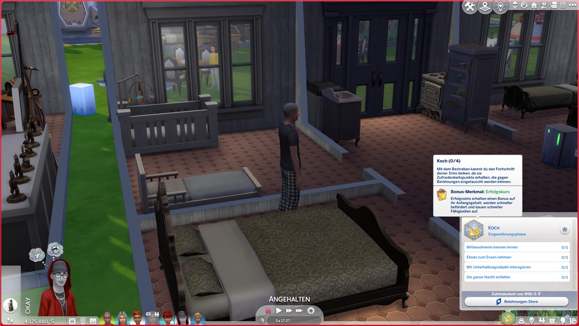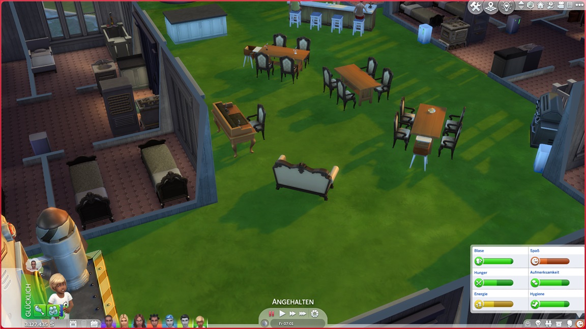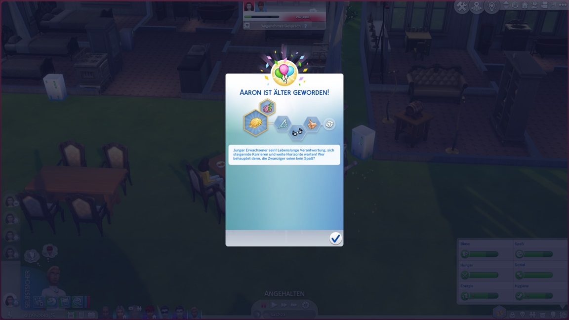 Carina ruft "offiziell" eine Hausparty aus - ohne Belohnungen und allein mit Gästen aus der Kolonie -, damit sie einmal schnell die benötigten drei Getränke abarbeiten kann.