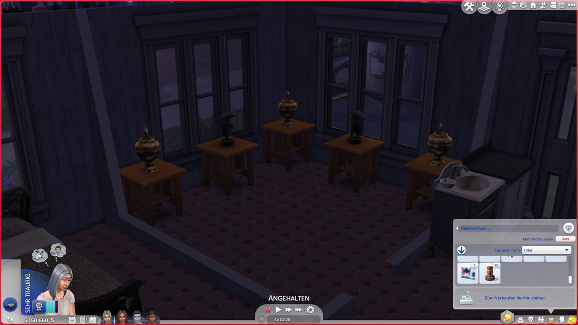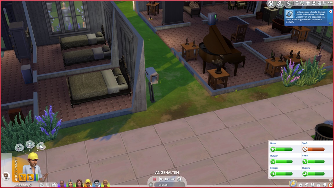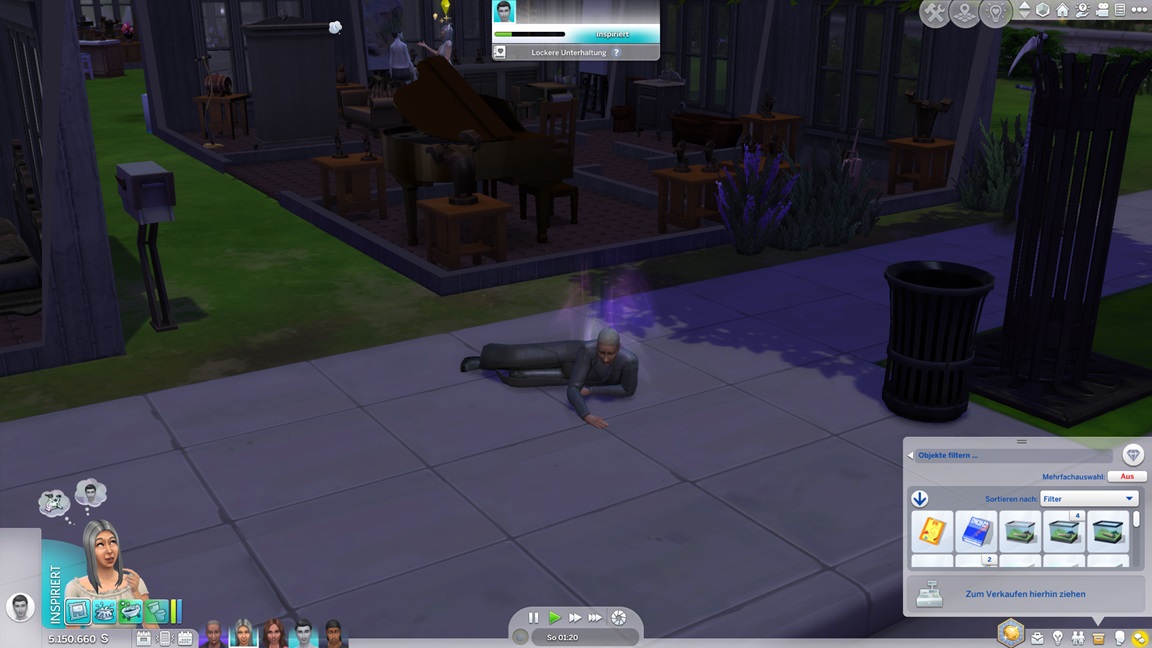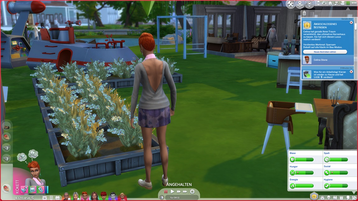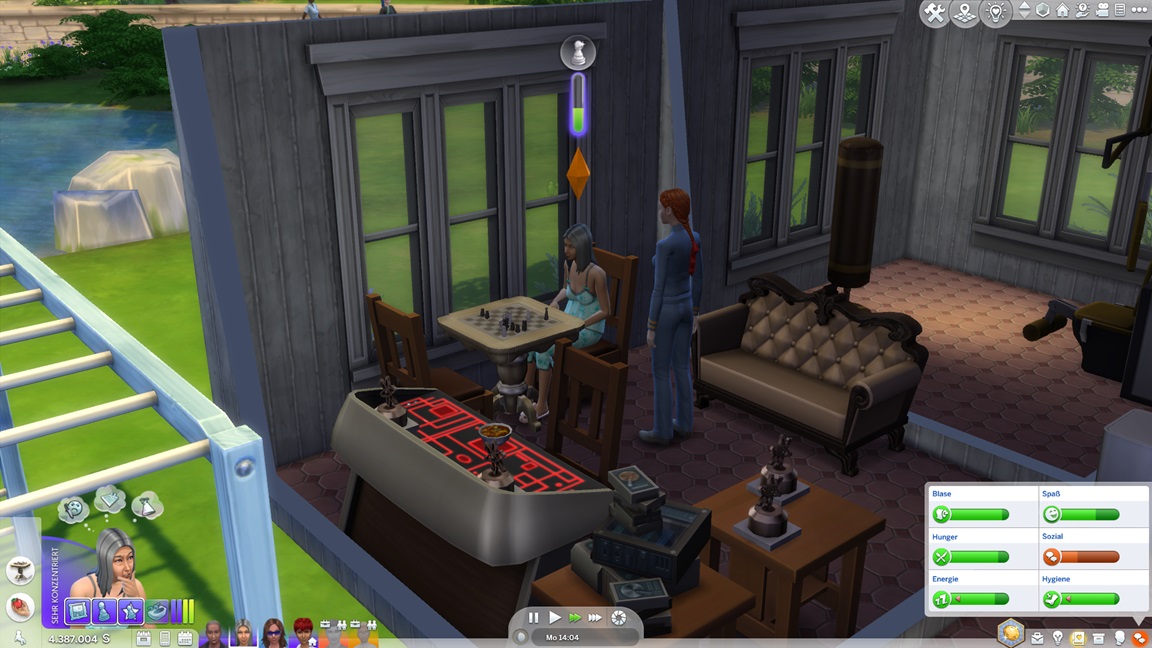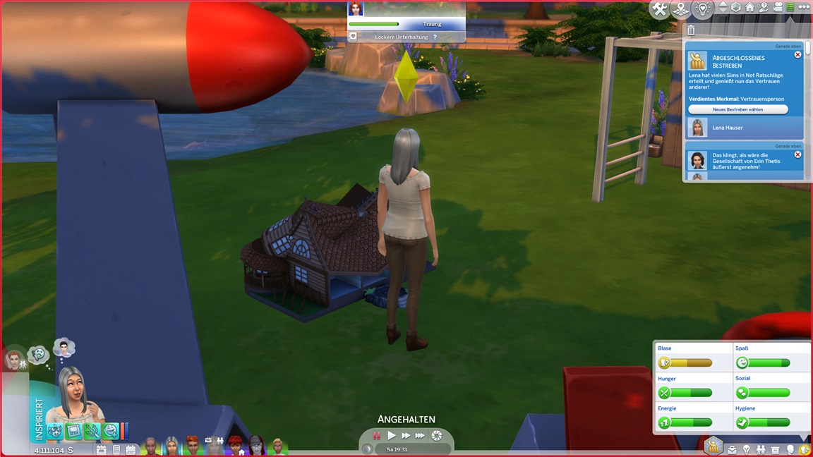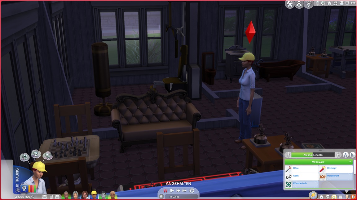Alessia stellt fest, dass sie Angeln hasst. Keiran bringt eine verspielte Figur im Spaßraum unter (und hätte gerne auch eine zweite hinzugefügt, doch das Regal erwies sich als zu breit).