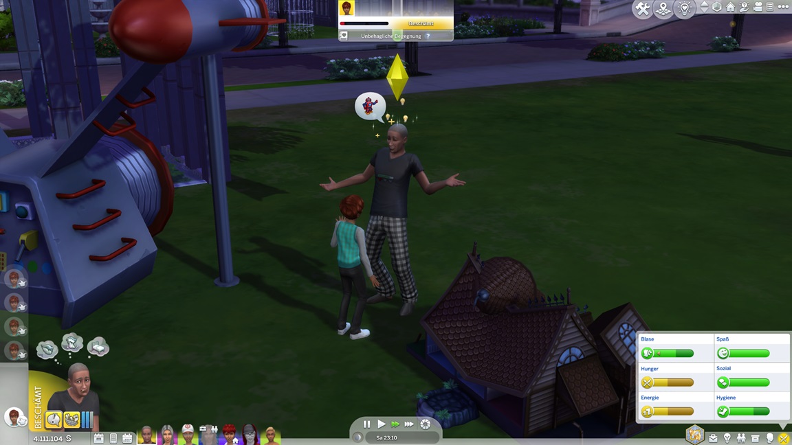 James stellt fest, dass er Fitness mag, und klagt über ein Problem: Mittels des Kontakte knüpfen-Features nutzte er die Zeit jenseits der Kamera, um sich mit dem Mädchen Jenny anzufreunden, doch es wurde ihm nicht angerechnet - und als er sie einlädt, weil er hofft, dass nur eine Interaktion fehlt, ruft ihn die Schule.
