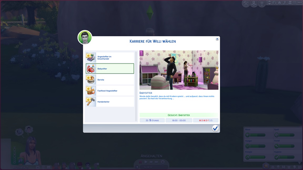 Willi entscheidet, auch einmal die Schülerarbeitsstellen auszutesten, und steigt als Babysitter ein.