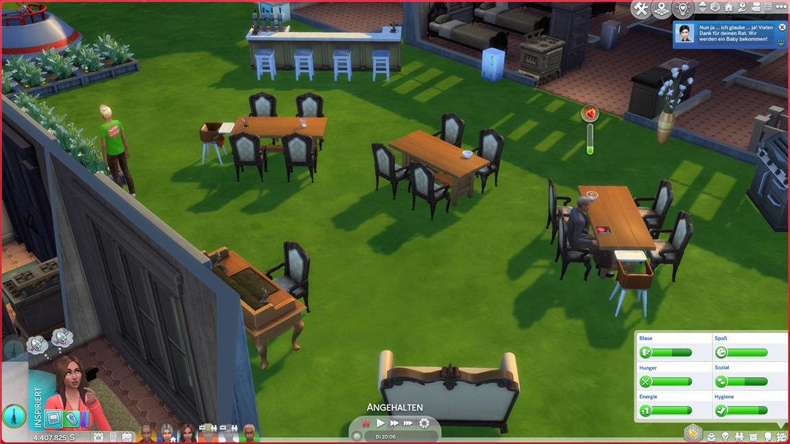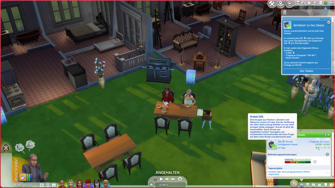 Lena erlangte eine Beförderung und schaltet damit Drehstühle frei. Alessia muss für ihr Bestreben Fische aufhängen und schmückt damit die Container.
