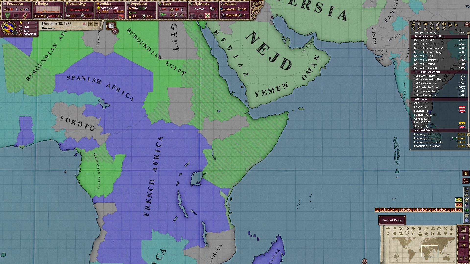 Ich beginne derweil damit, einen Kriegsgrund gegen Äthiopien zu fingieren, da diese immer noch als unzivilisiert zählen, und nehme zwei Drittel der maximal möglichen Infamie hin.