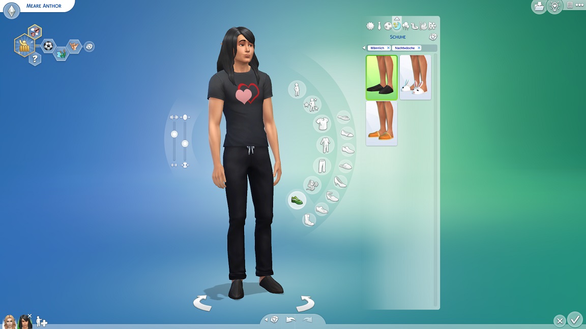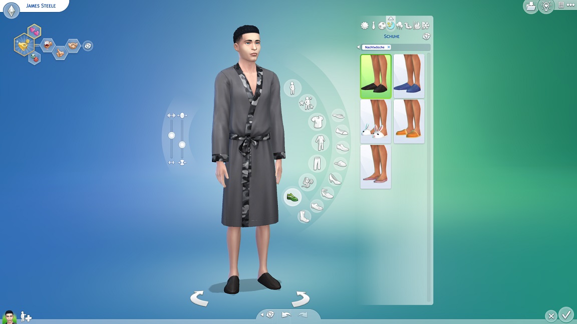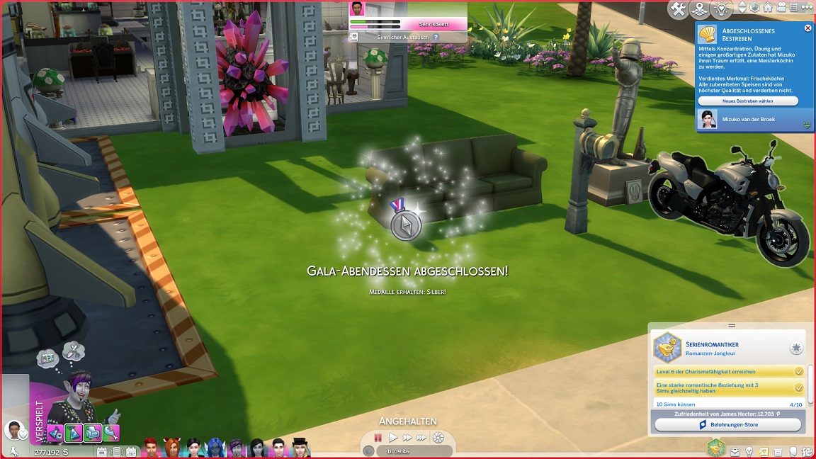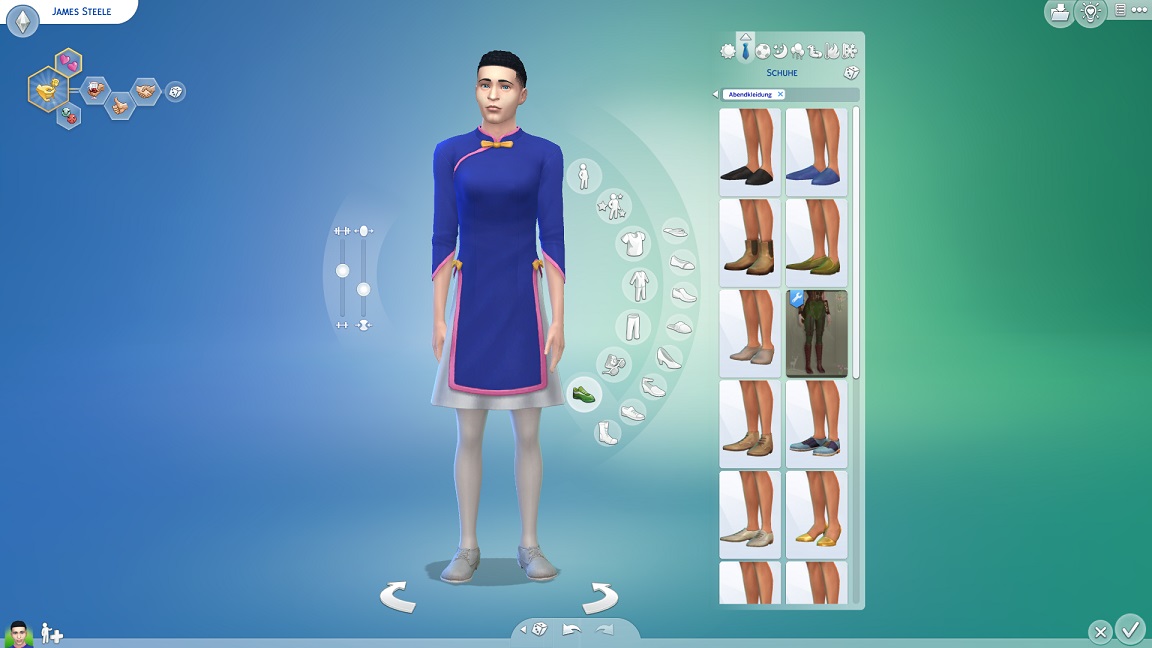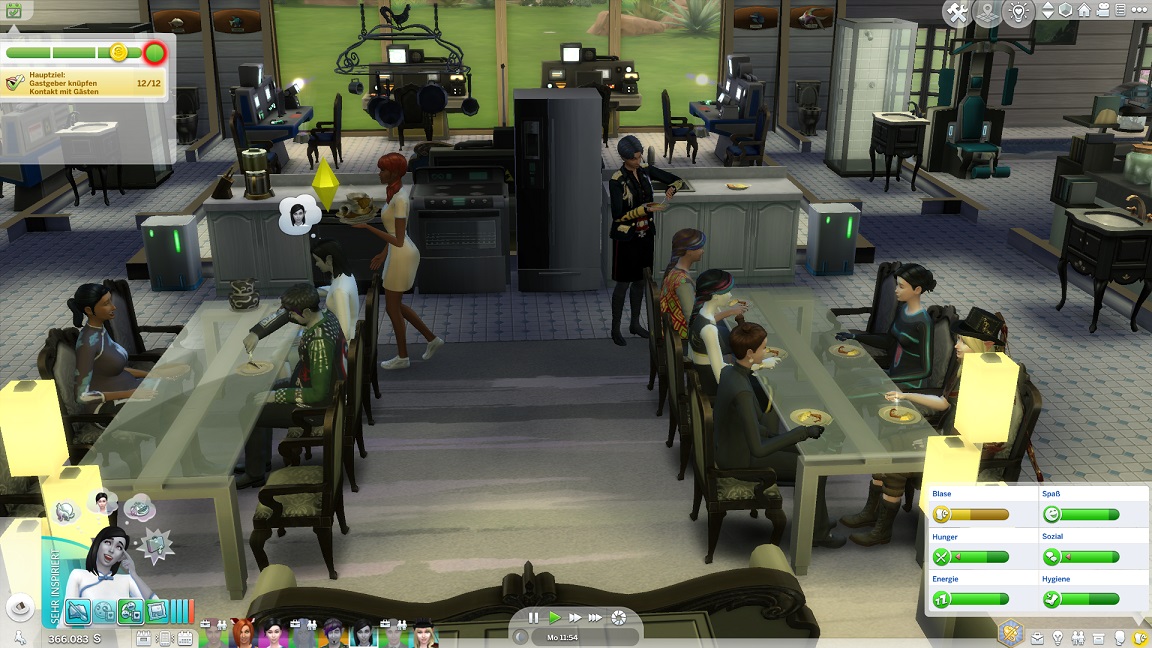 Auf der anderen Seite... und hier möchte ich doch noch eine Anekdote erzählen: Als ich nach küssbaren Zielen für James suchte und dafür die einladbaren Kandidaten durchsah, wirkte es aufgrund eines Kostüms ohne Hut, als sei seine Spielpartnerin Sophia nun volljährig geworden. Da schreckte ich zurück und ließ ihn lieber die Reinigungskraft umgarnen...