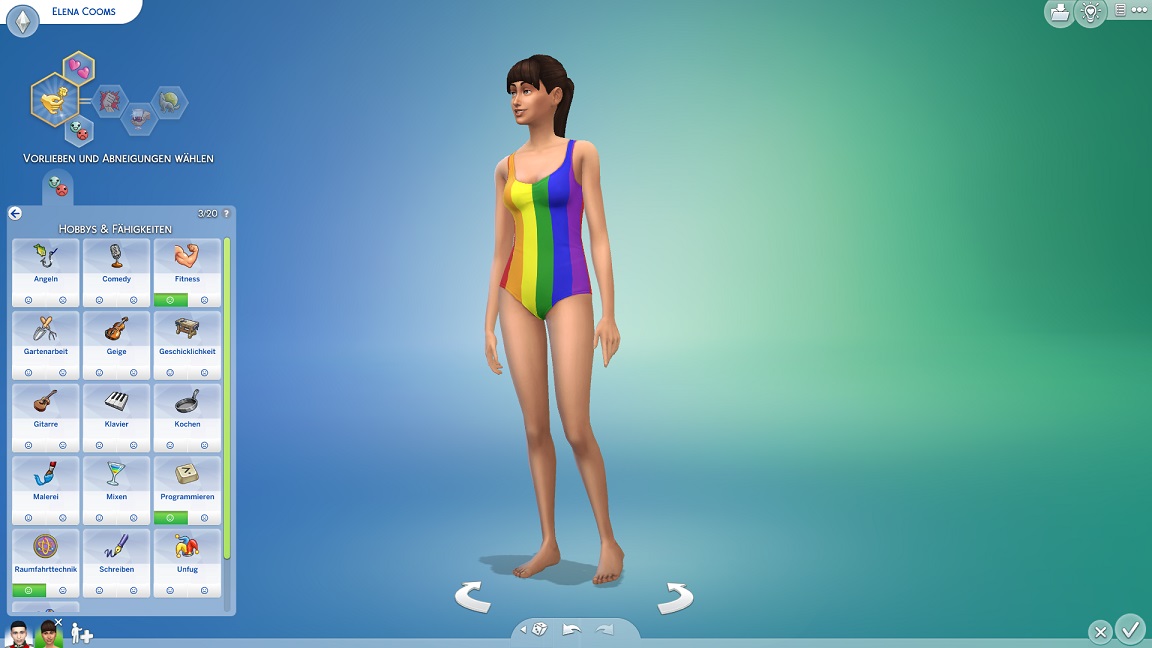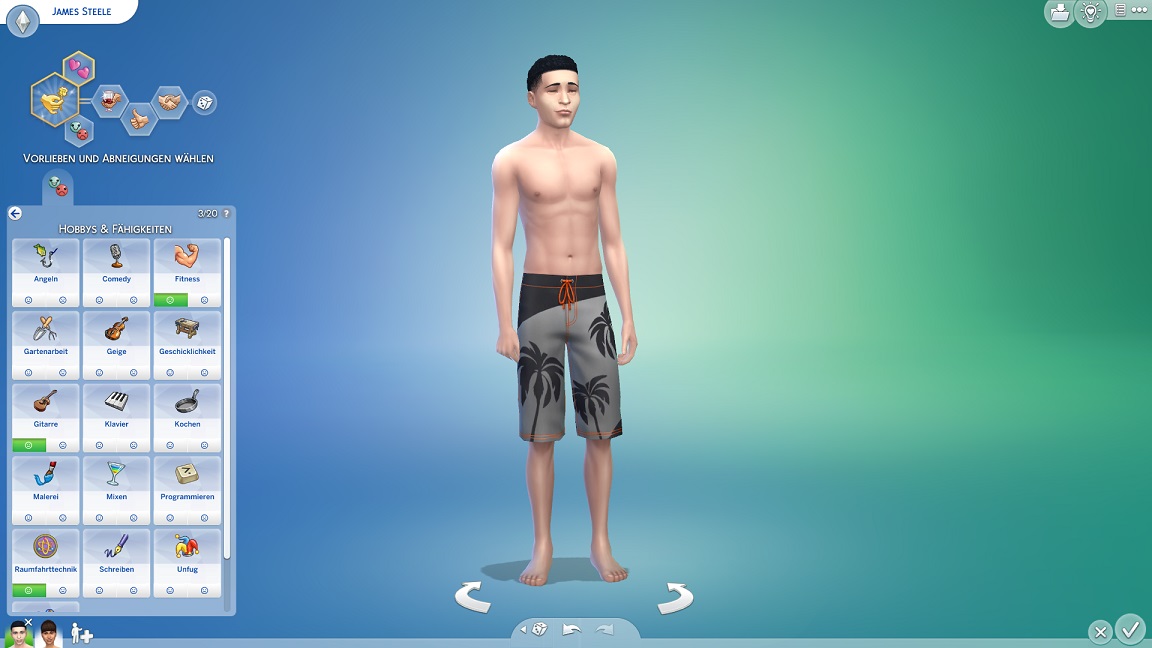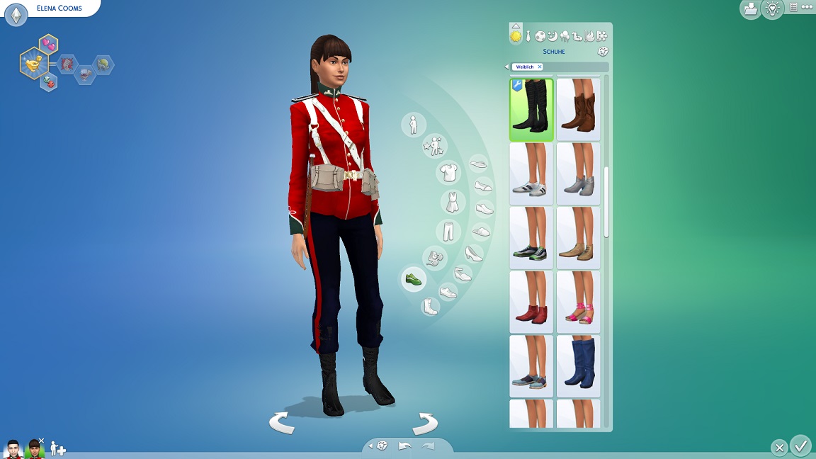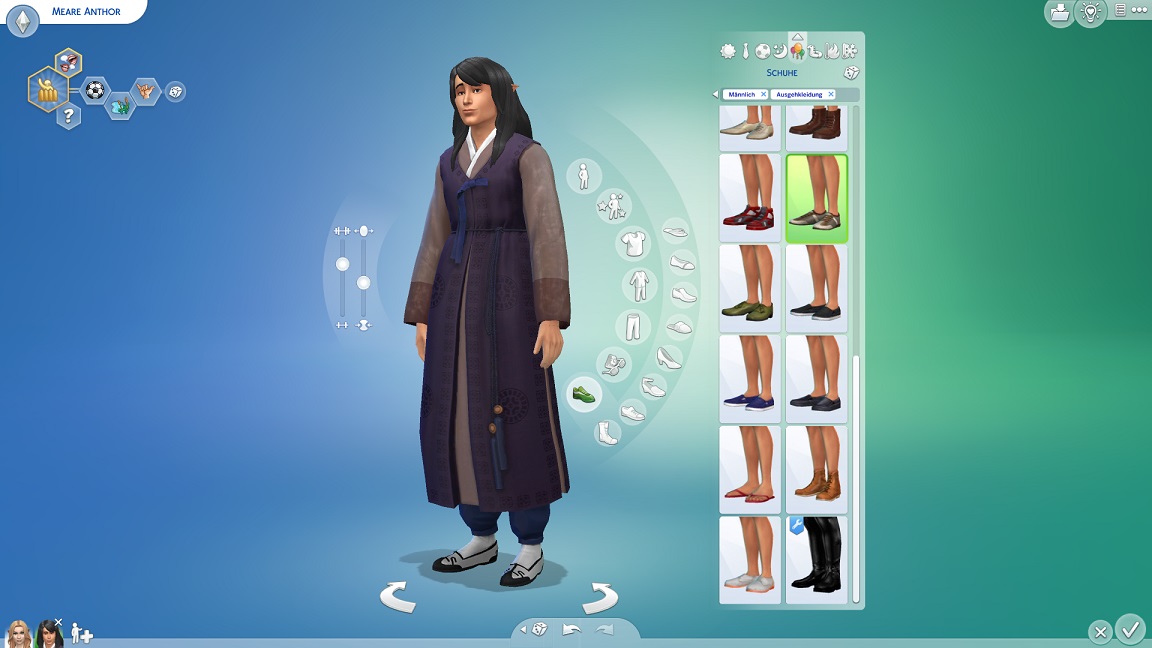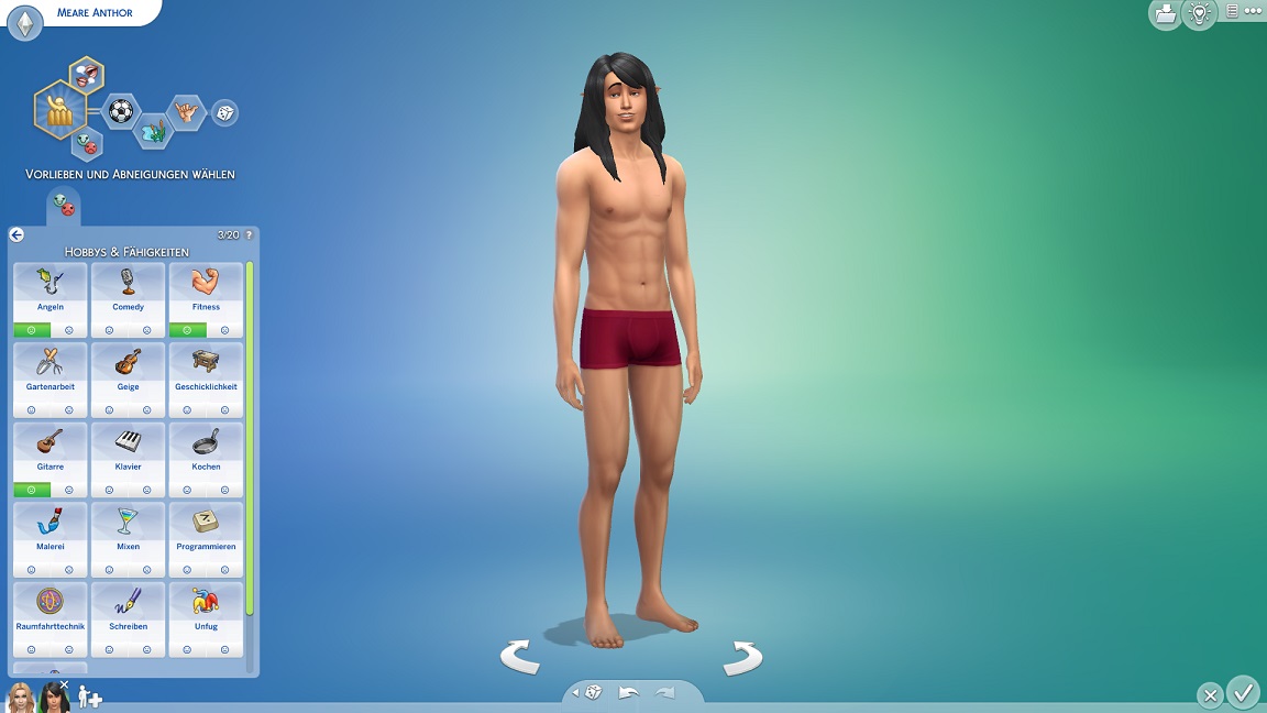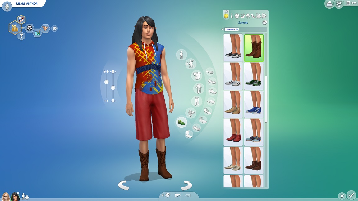 Auf der anderen Seite... und hier möchte ich doch noch eine Anekdote erzählen: Als ich nach küssbaren Zielen für James suchte und dafür die einladbaren Kandidaten durchsah, wirkte es aufgrund eines Kostüms ohne Hut, als sei seine Spielpartnerin Sophia nun volljährig geworden. Da schreckte ich zurück und ließ ihn lieber die Reinigungskraft umgarnen...