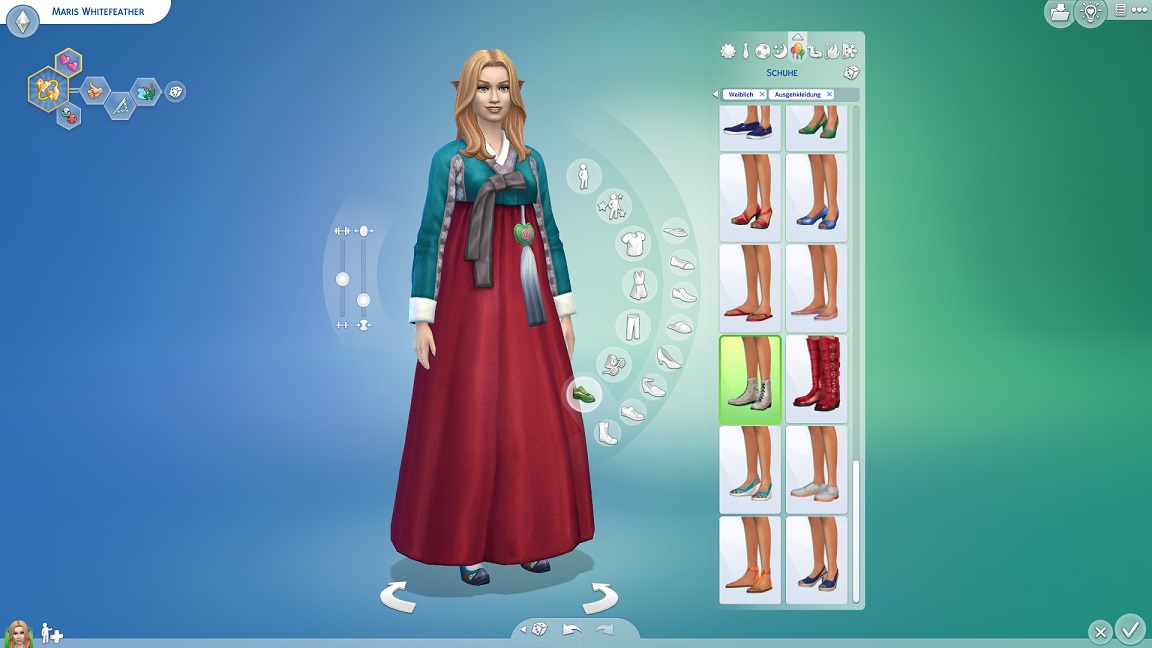 Effektiv erschuf ich nun zwei harmonische, vielleicht sich zu sehr ähnelnde Paare... und ich tendiere dazu, die beiden Stammes-Elfen eben nicht als "futuristische Menschen" zu zählen. Entsprechend würde ich dann auch ihre Verlobung nicht mit ins Spiel übernehmen, da Sims darunter ein anderes Verhältnis als jenes "arrangiert, ansonsten distanziert" versteht.