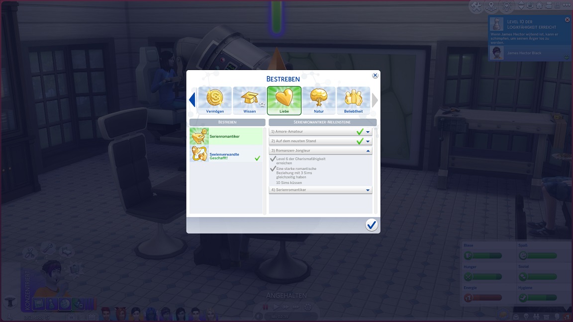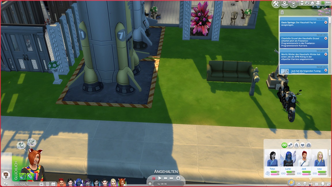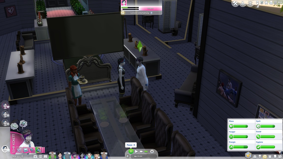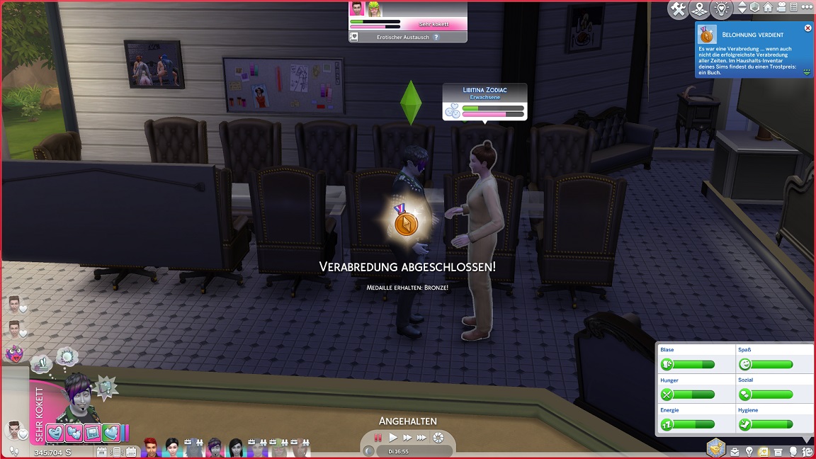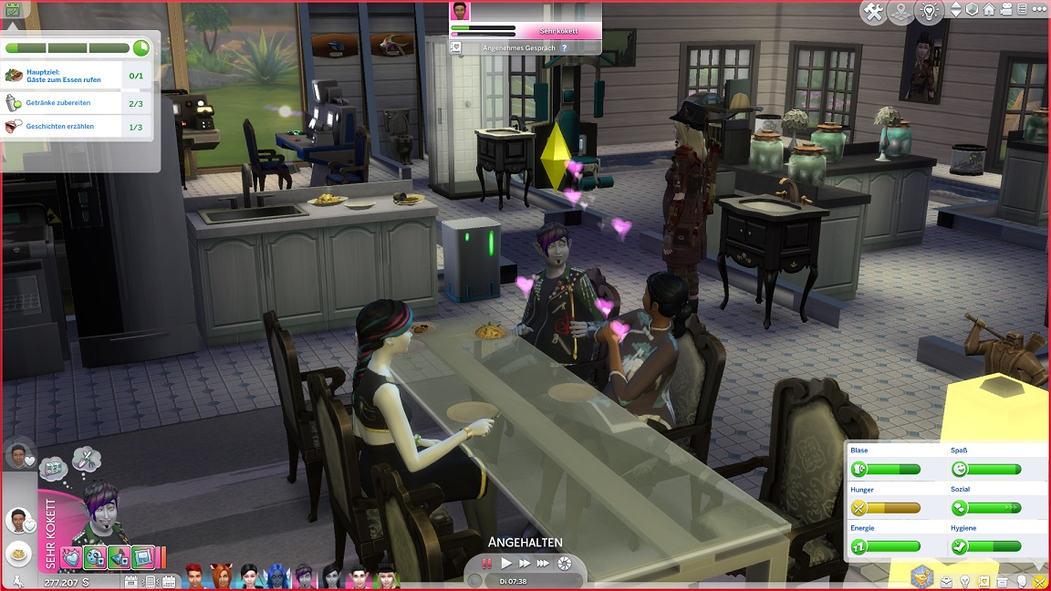... wie aber geschrieben: Die Sims kommen mit diesen Subtilitäten nicht gut klar, und letztlich wäre es nur auf ein "Kommen sie zusammen und formen sie eine Nuklearfamilie oder entwickeln sie ihre Leben vorwiegend aneinander vorbei?" herausgelaufen; in meinen bisherigen Spielen sorgte ja auch der Mod dafür, dass direkt das Anziehungs-Popup aufblitzt und sie recht schnell zusammenfanden.