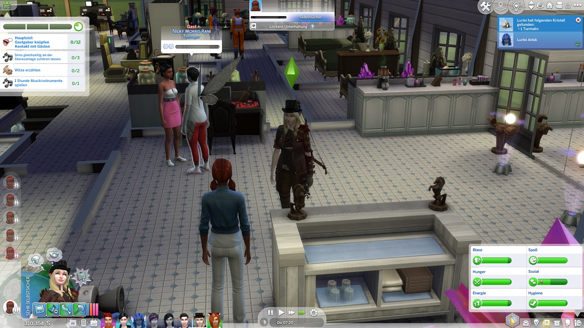 Nach ihrer Runde findet die sich wieder im Haus langweilende Lurlei, dass sie ihre Kameraden ohnehin schon gut genug nackt kennen. Das Popup klärt darüber auf, dass sie dafür eine Eigenschaft benötigt, die sie erhält.