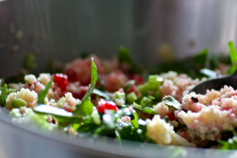 Couscous Salat mit Johannisbeeren, Rucola und Sellerie