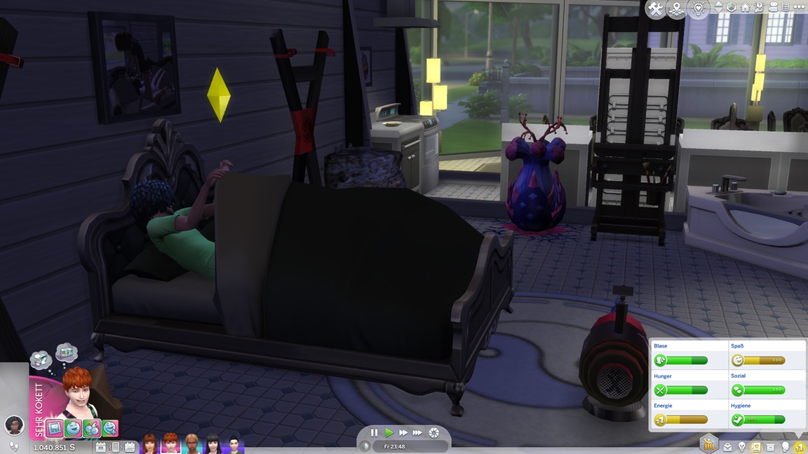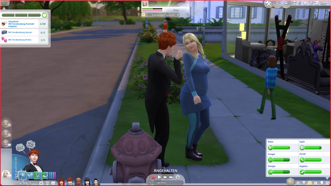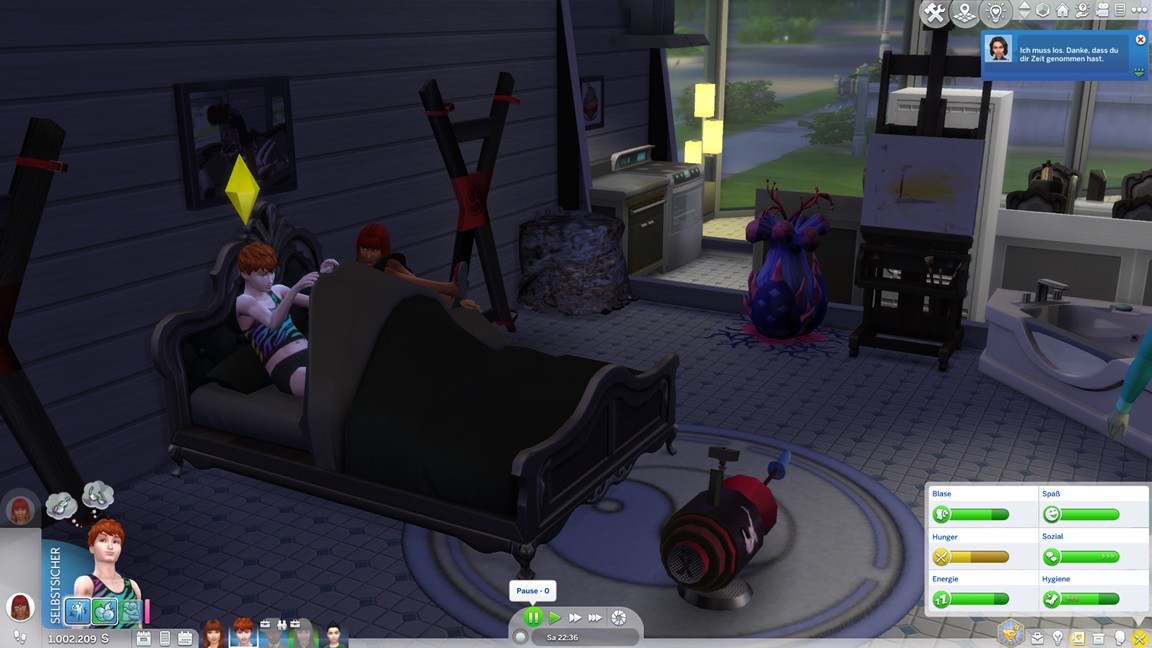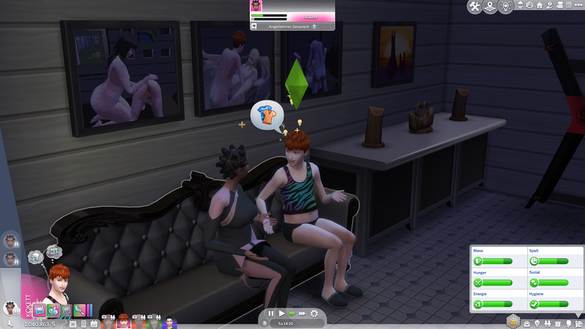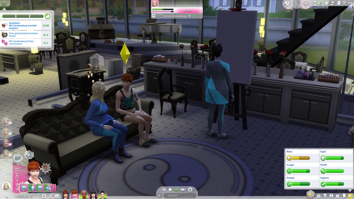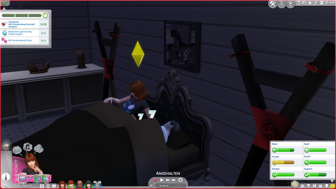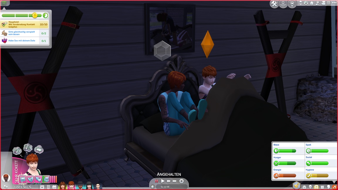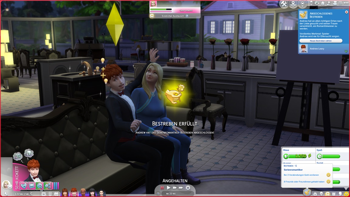 Andrew bemühte sich während des Ausflugs um Sara Arlok, lud sie ein und ließ sich von den Denkblasen zu einem Date verleiten. Diese lehnt nach Mod-Eigenschaften Beischlaf ab, doch für die alte Nummer unter der Decke bleibt sie zu haben.