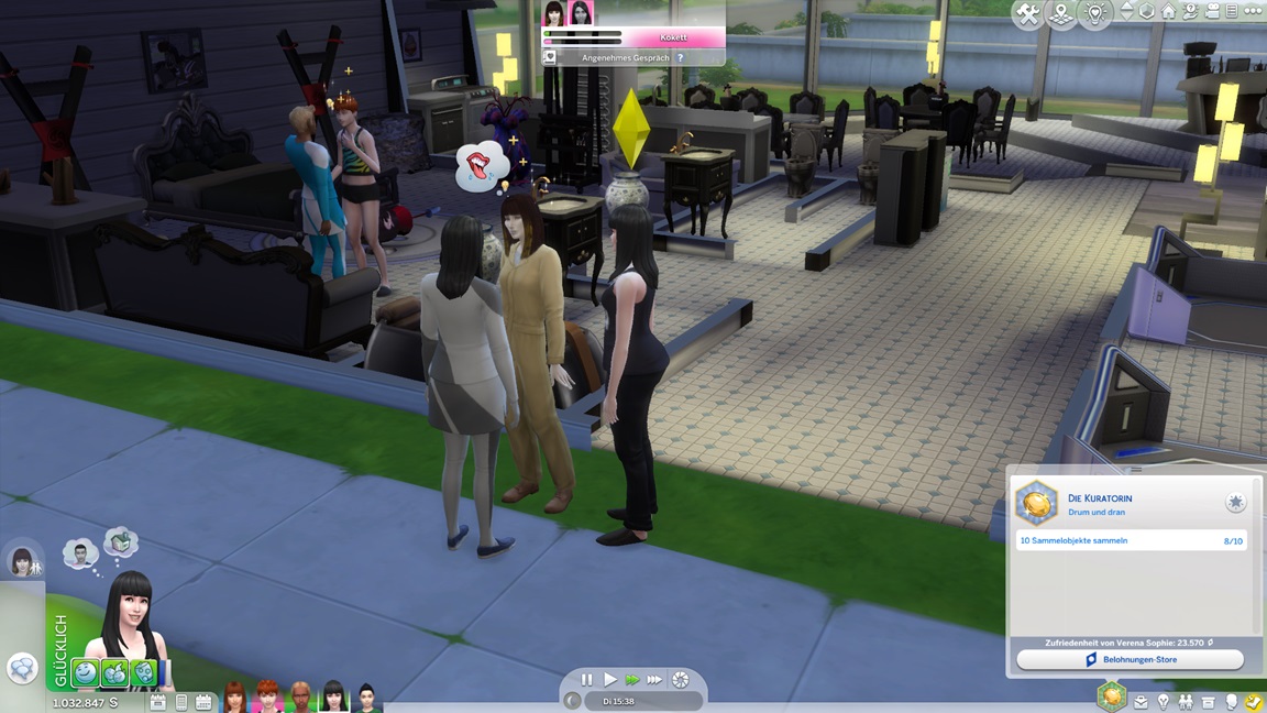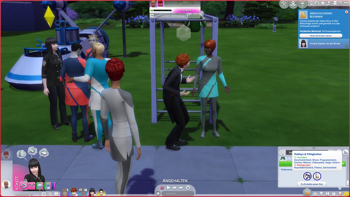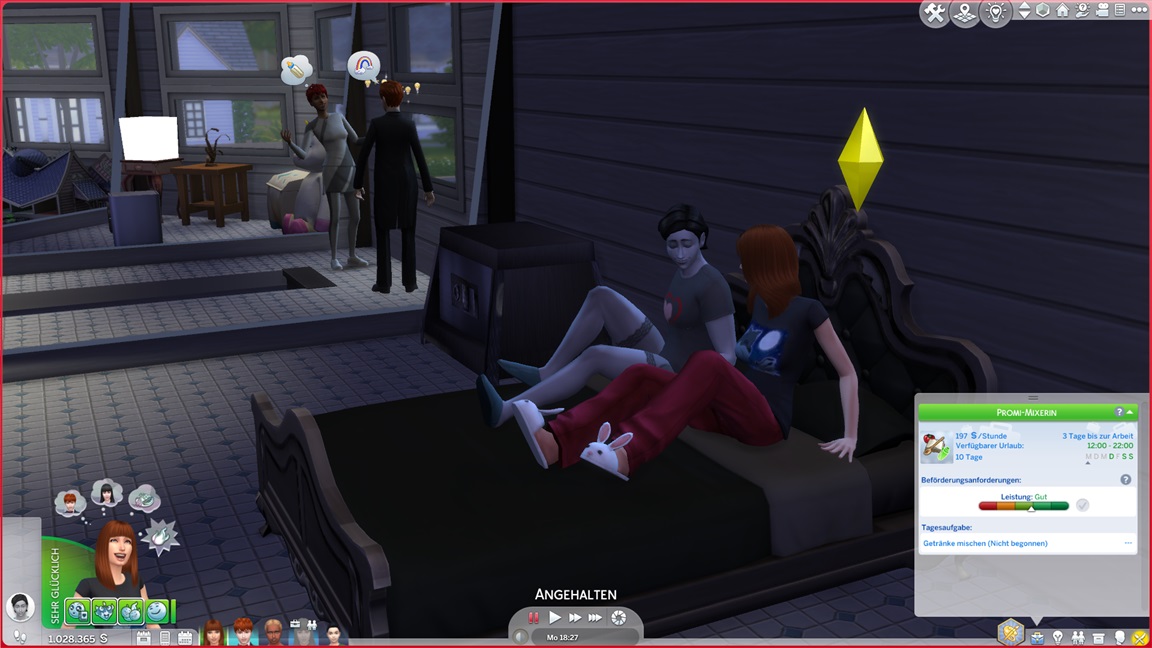 Die Entscheidung des nächsten Bestrebens ließ ich offen. Etwas Soziales würde sich anbieten, doch das Micromanagement von drei Sozialcharakteren erweist sich aktuell bereits als zuviel.