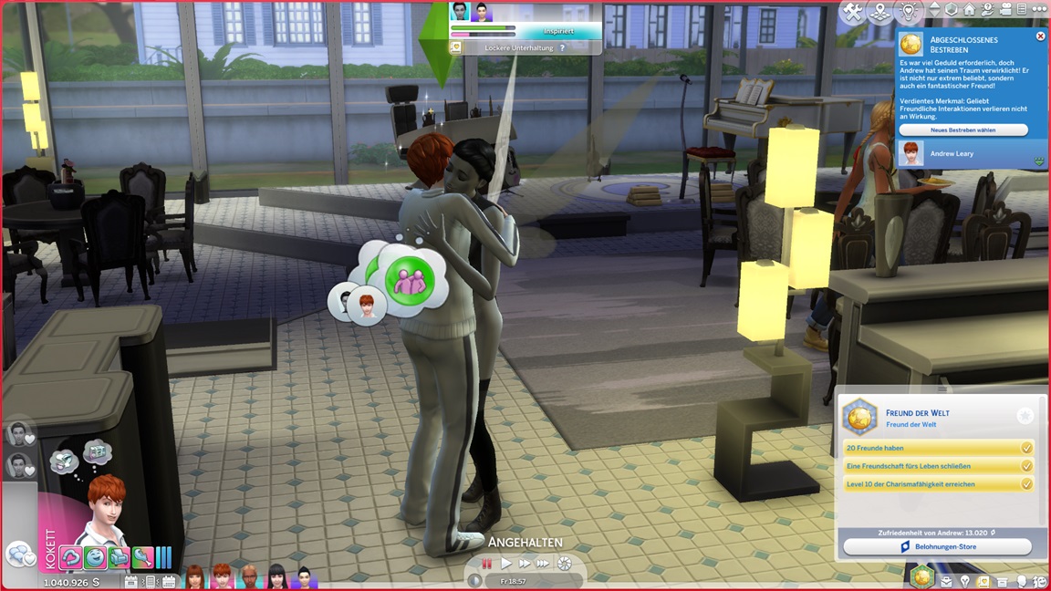 Andrew benötigt immer noch drei Verabredungen mit Gold, sodass er nach dem Achievementspiel zu Lisa greift. Justina weilt noch vor Ort und eröffnet ein Bild - das bedeutet in der Kampagne meist etwas anderes.