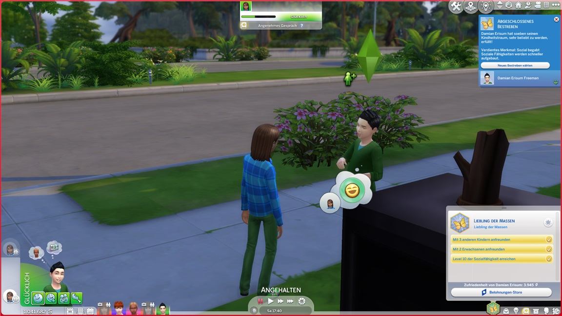 Inzwischen schloss er sämtliche Kinder-Fertigkeiten ab. Nun muss er Freunde finden.