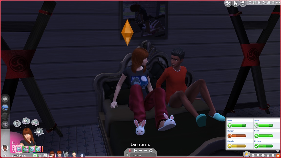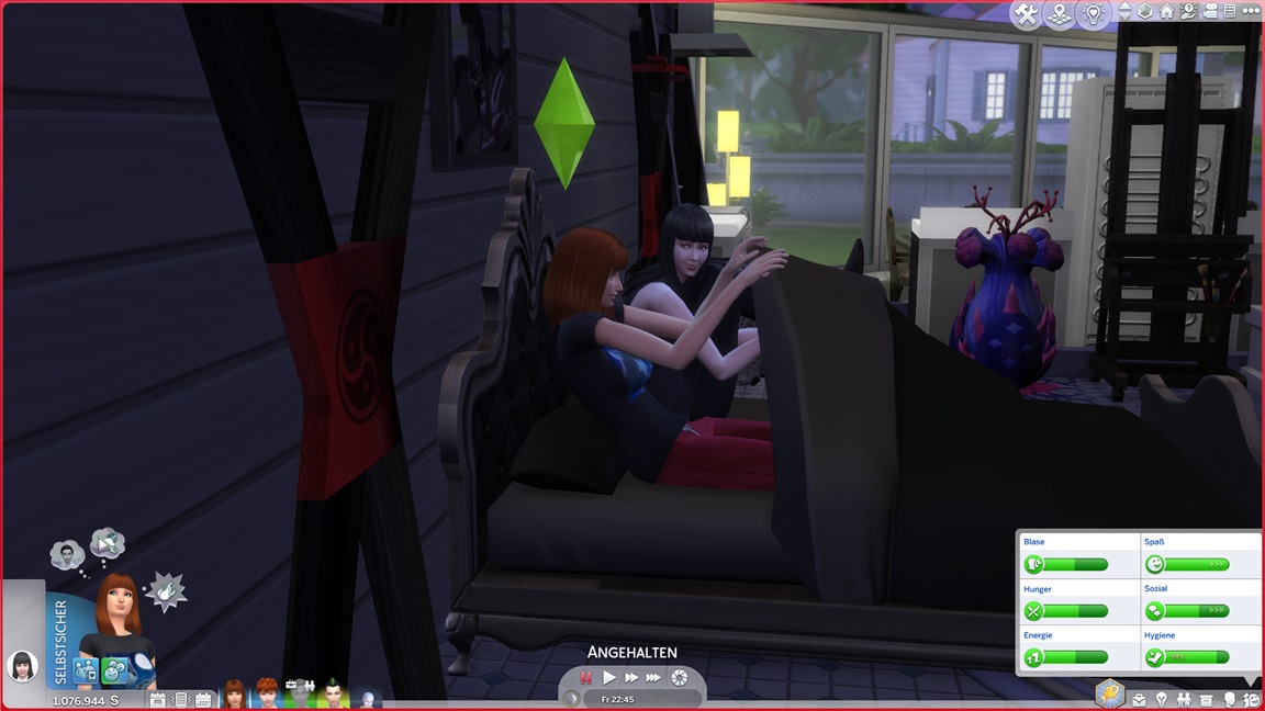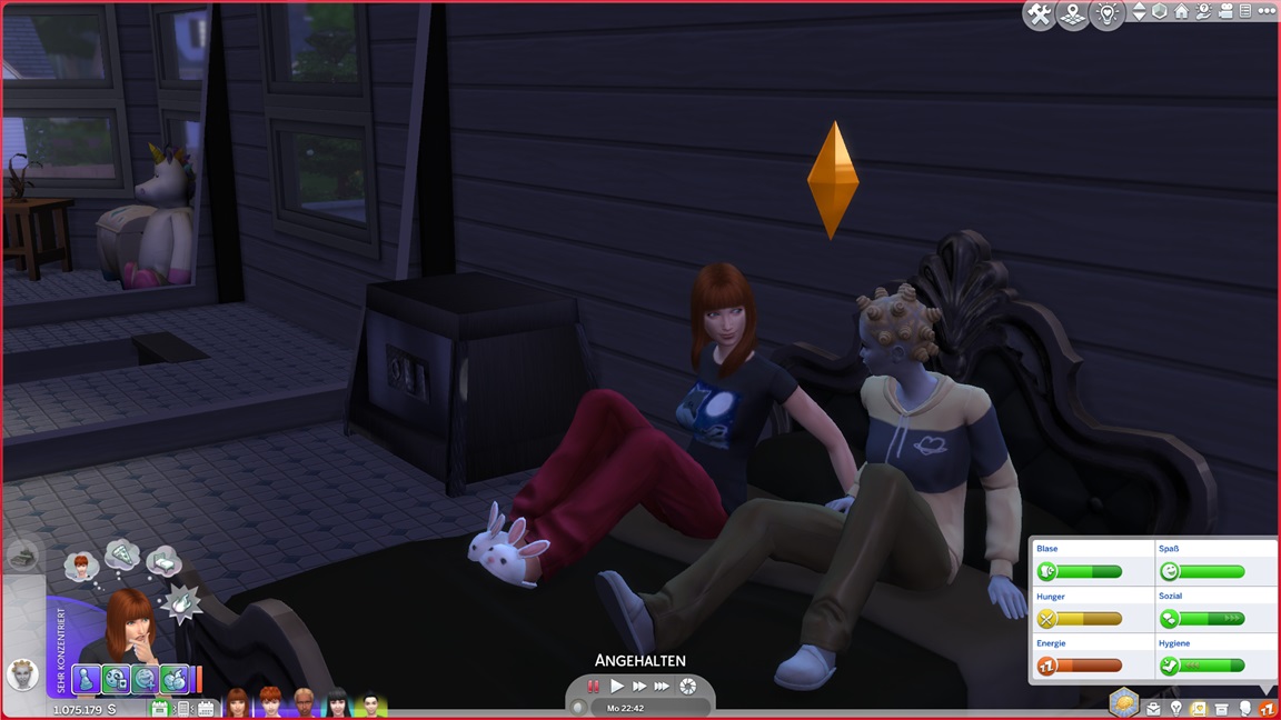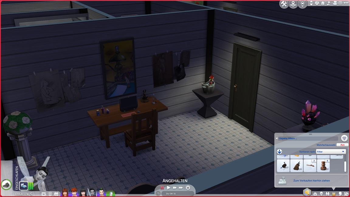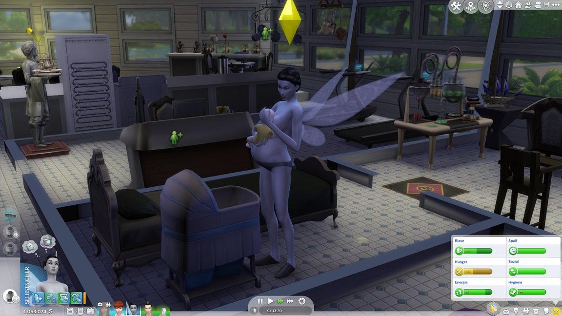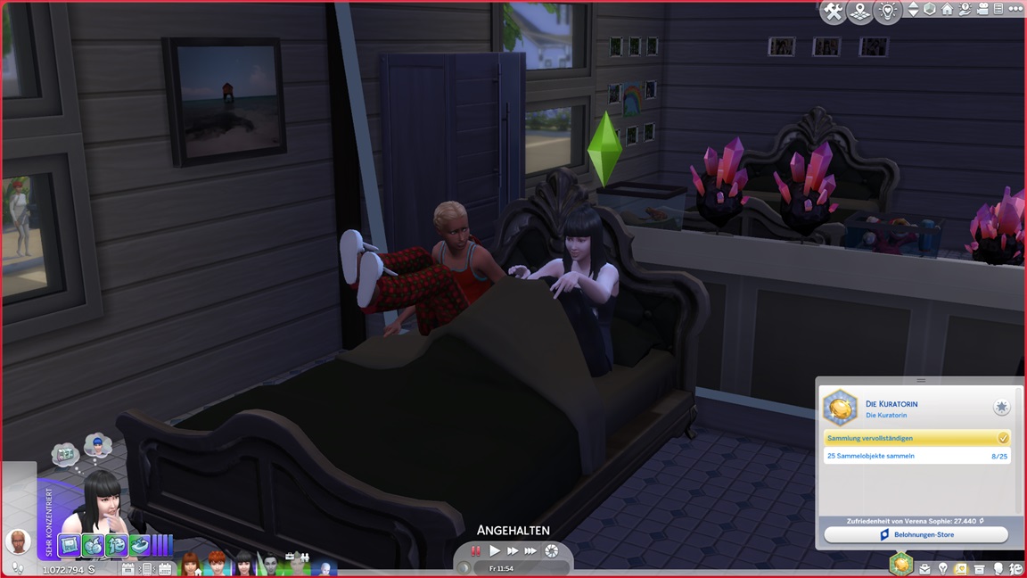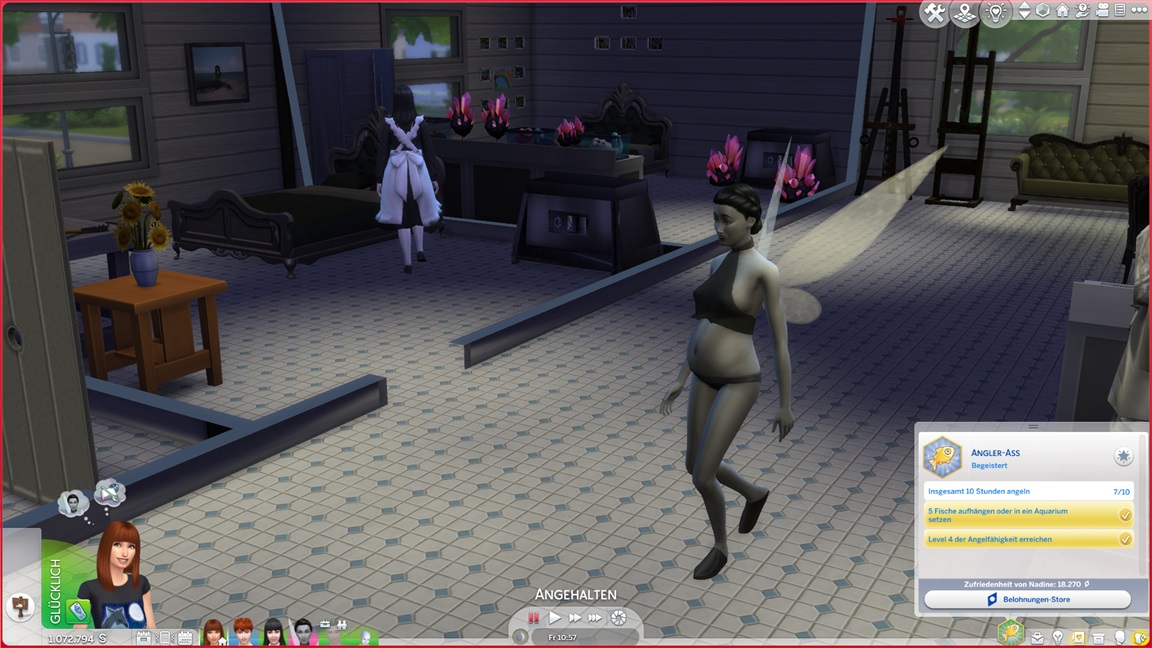 ... und kehrt (für den Moment?) zu ihrem eigentlichen Job zurück, hoffe ich doch immer noch auf Drillinge. Zuvor erweitert sie ihre Kabine noch um einige Figuren und Kristalle.