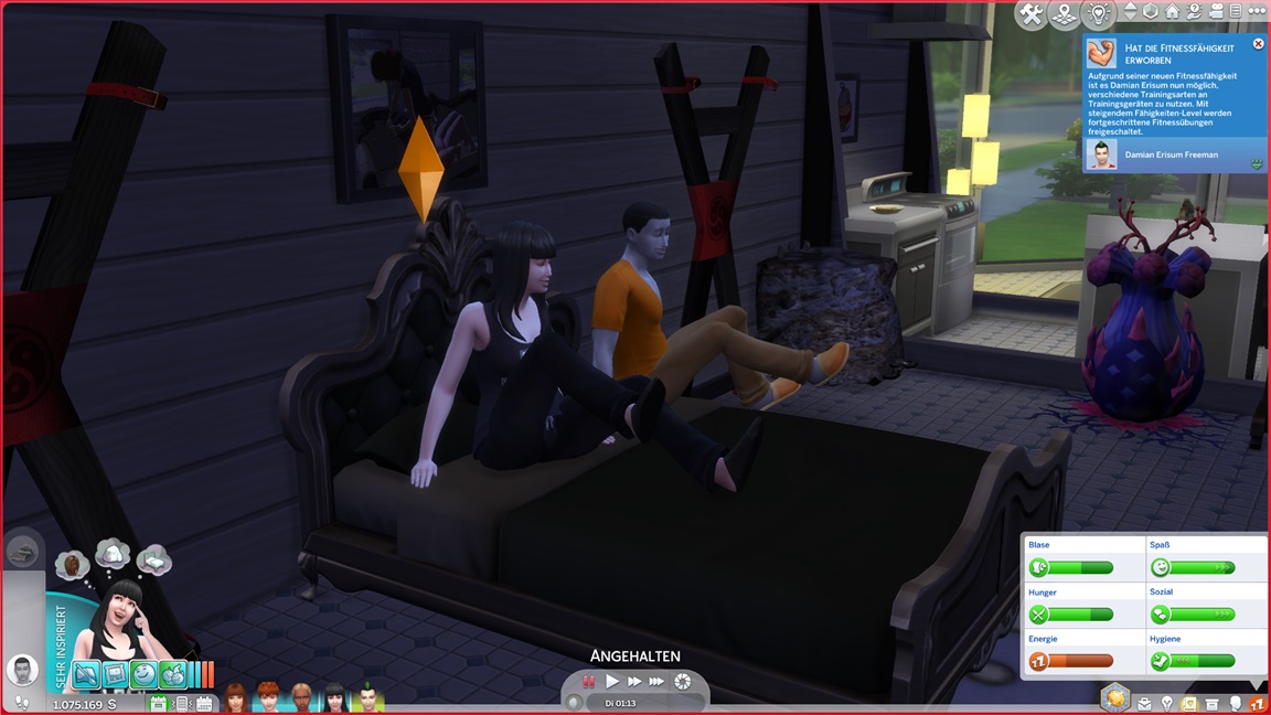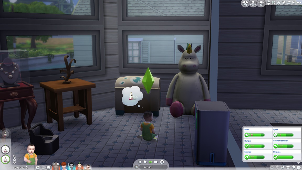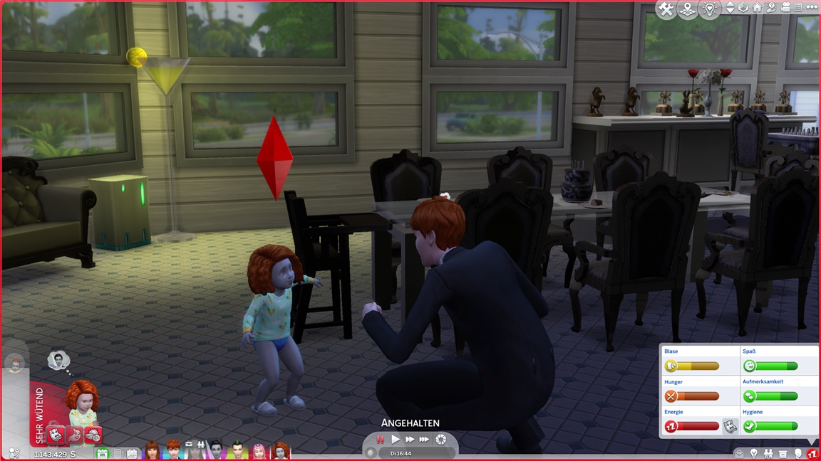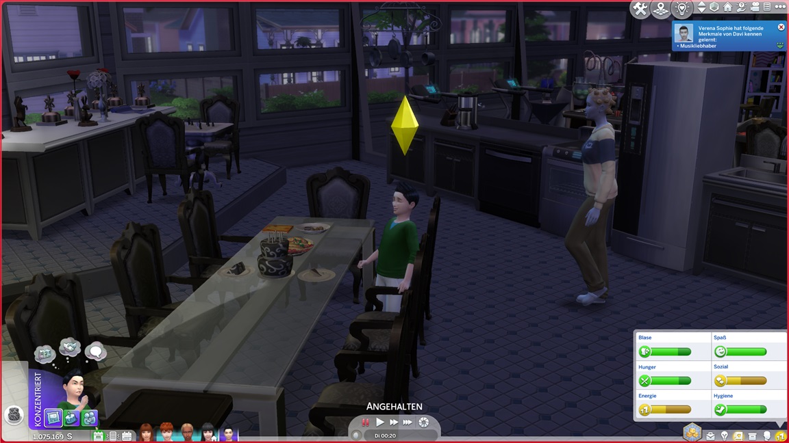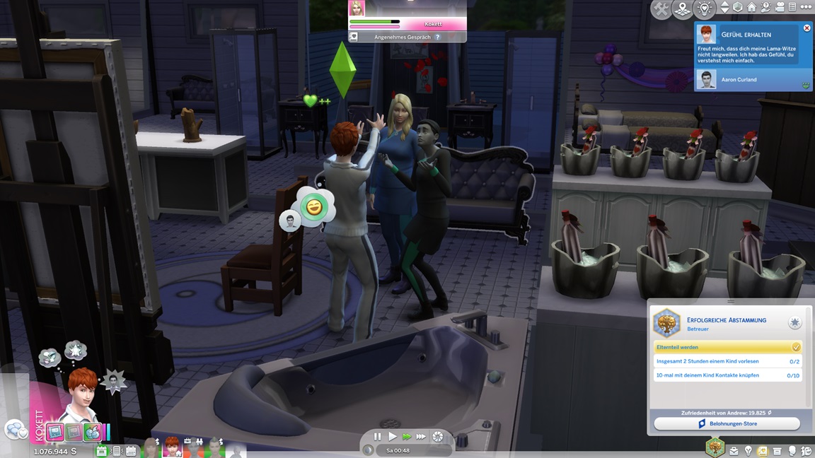 Carolin verpuppt sich, gewinnt das Bonusmerkmal und erhält "engelsgleich". Als mir ähnlich der Belegschaft die Nerven schwinden, lasse ich Marcian direkt mit vor den Kuchen treten. Er präsentiert sich "heikel" - und ebenfalls mit Bonusmerkmal.