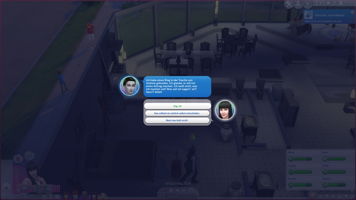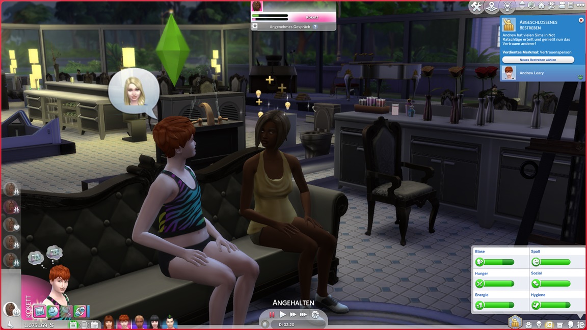 Sie befindet sich noch auf der "Koch, soweit es ohne Berufswechsel möglich ist"-Bestrebung, doch da ihr Camgirljob verschwand, übernimmt sie eine reguläre Kochstelle. Andrew wechselt in das Qualitätsbestreben, um möglichst viel echte Familie zu bilden. Carolin erweist sich zuvorderst als bleich.