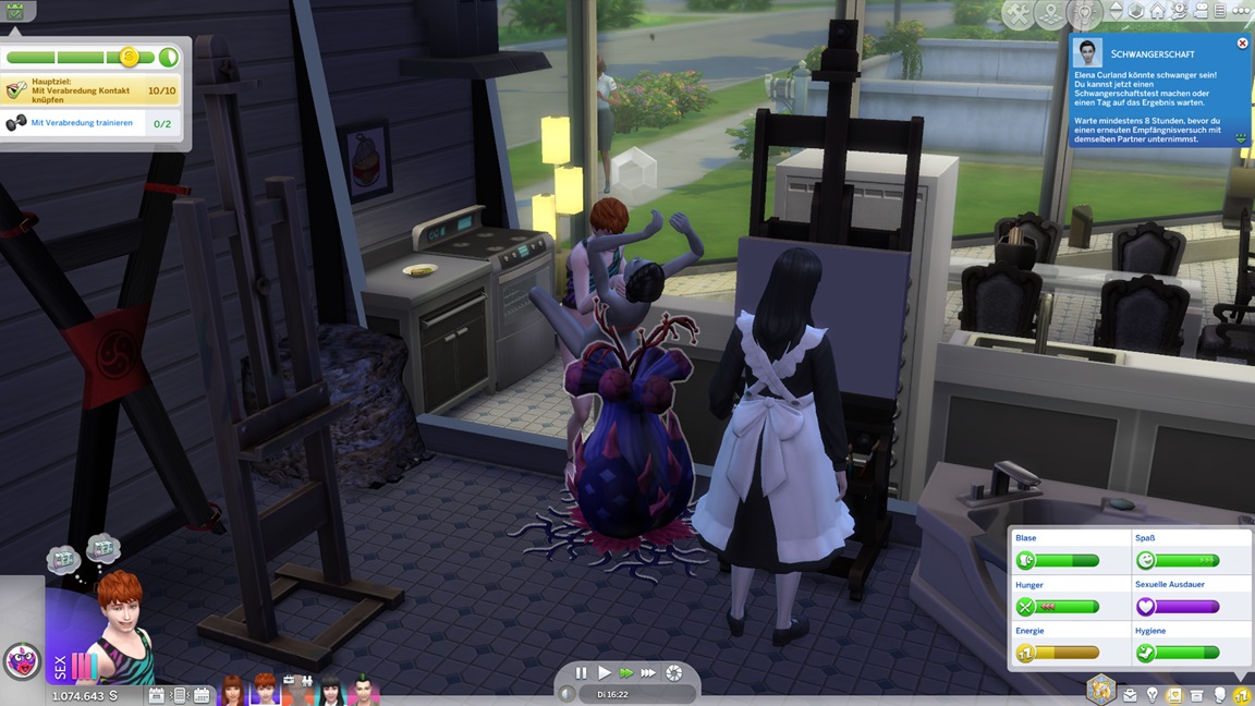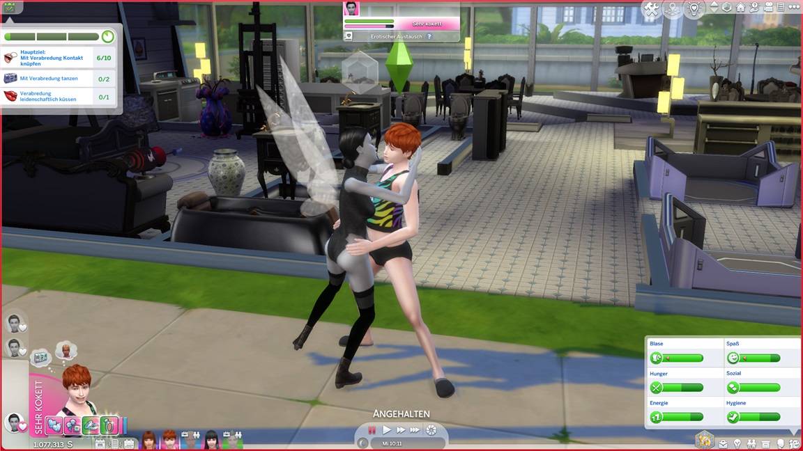 ... ach, sie belegte schon beide Leinwände bei dem Versuch, den Geschlechtsverkehr festzuhalten, da sie das erste Mal das Paar noch beim Plausch erwischte, sodass ihr die Mittel für das Jawort fehlen.