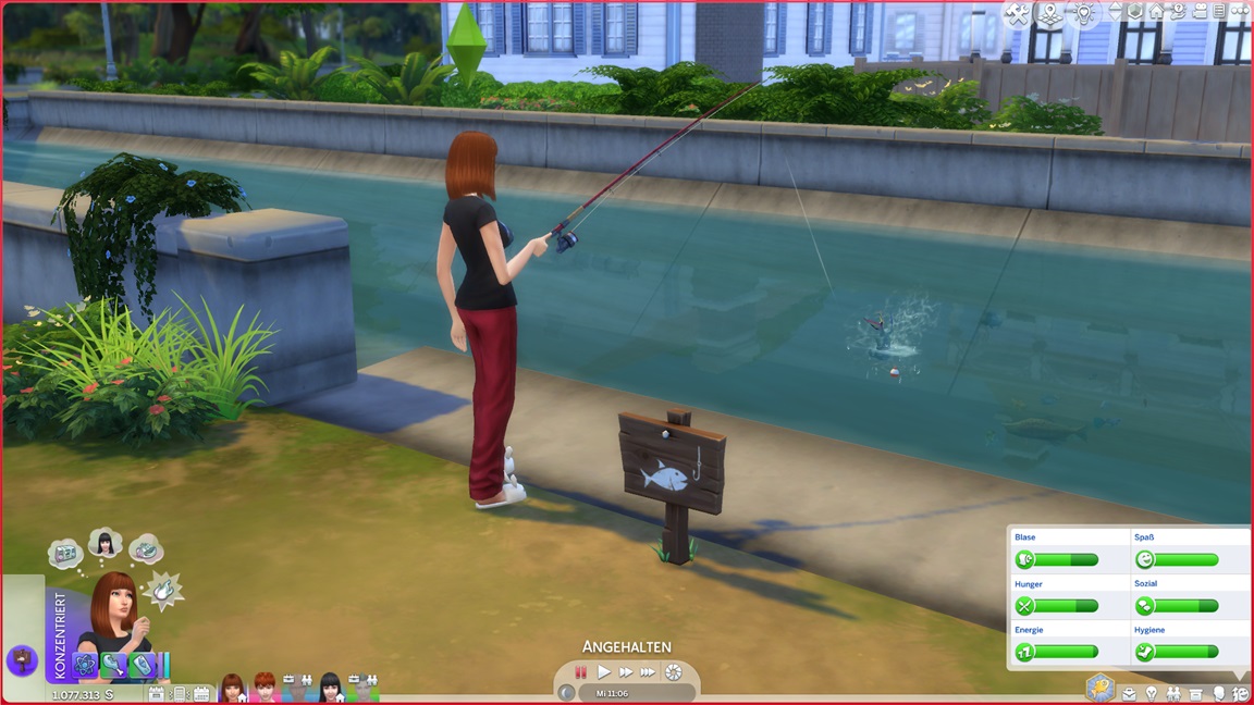 Da zwei weitere Angelstellen am Kanal liegen, fällt dieser Teil der Bestrebung Nadine leicht. Verena kerbt einen Pizzaboten.