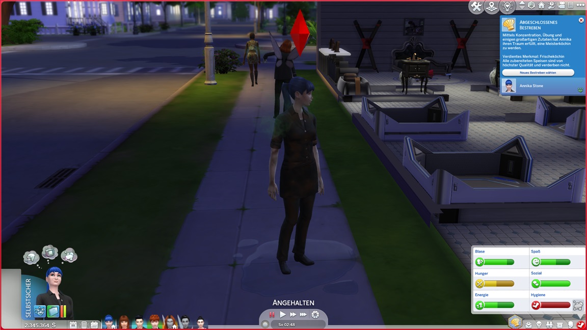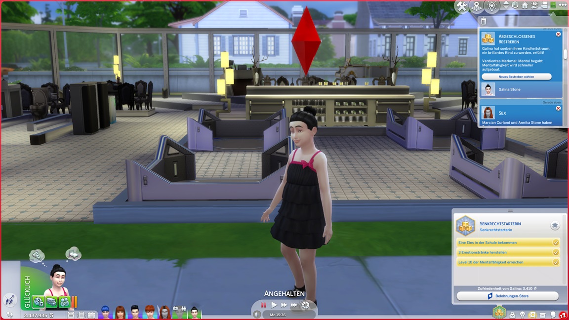 Annika packt die Koffer wieder aus und wählt das Qualitätsbestreben. Da dieses Kinder zum Vorlesen und später für Hausaufgaben benötigt, erhält Galina als Ausgleich ihr viertes Bestreben bewilligt.