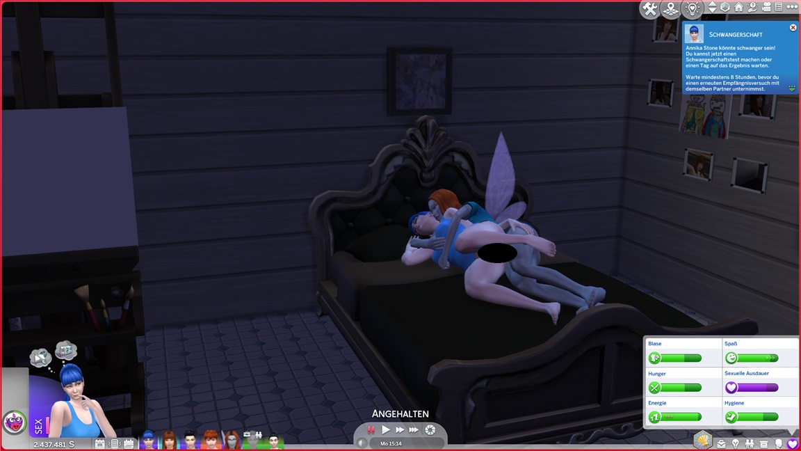Während Galina schläft und Nadine ihr Kind bei den anderen beiden kleinen Bildern zur Hand geht, verführt Annika Marcian.