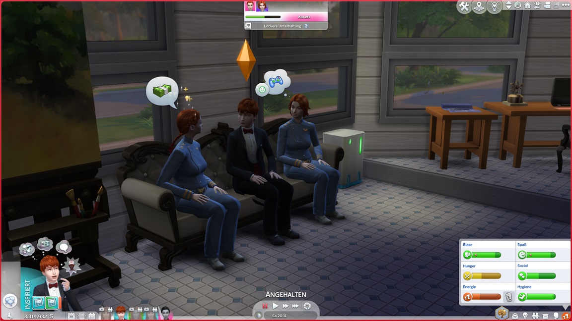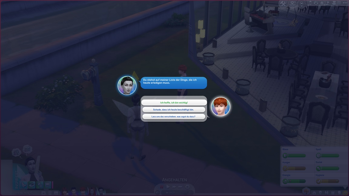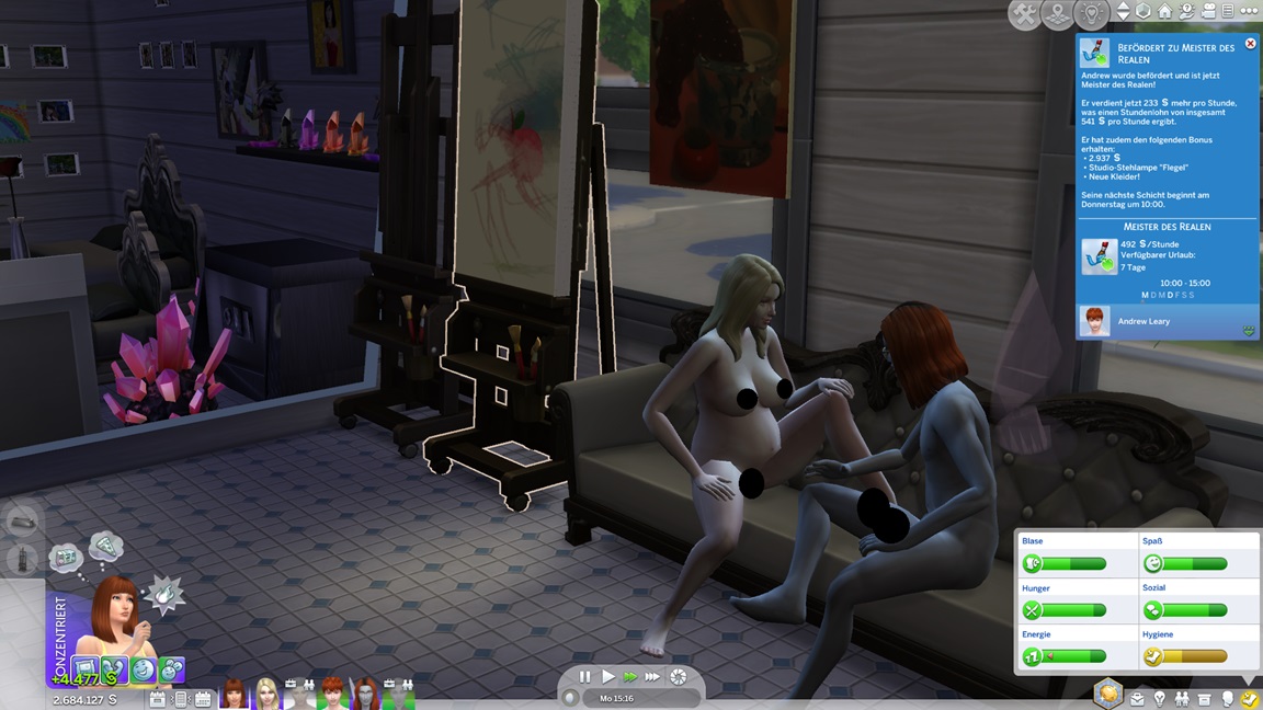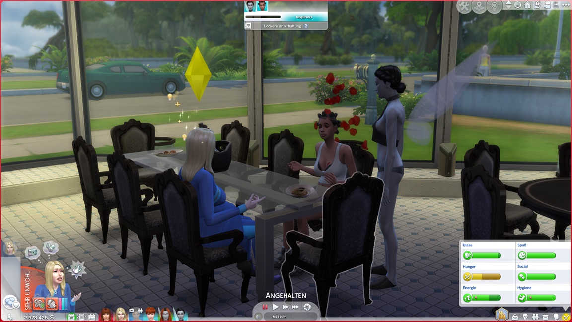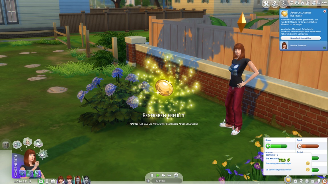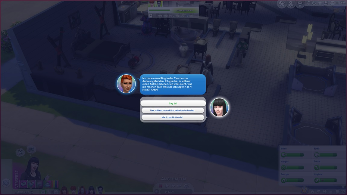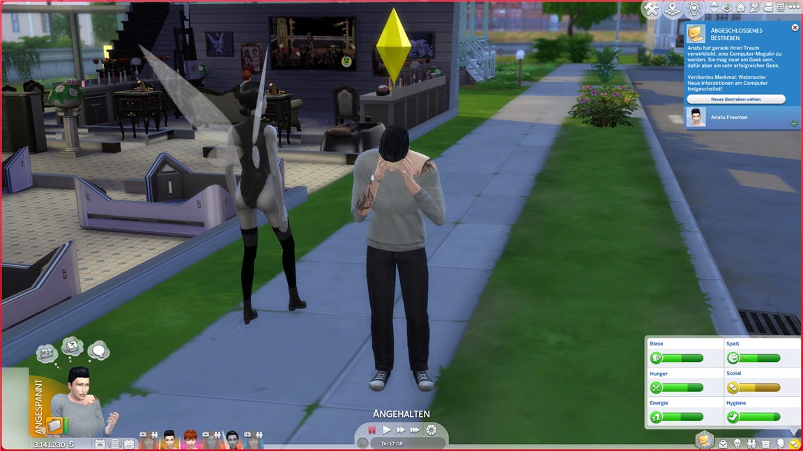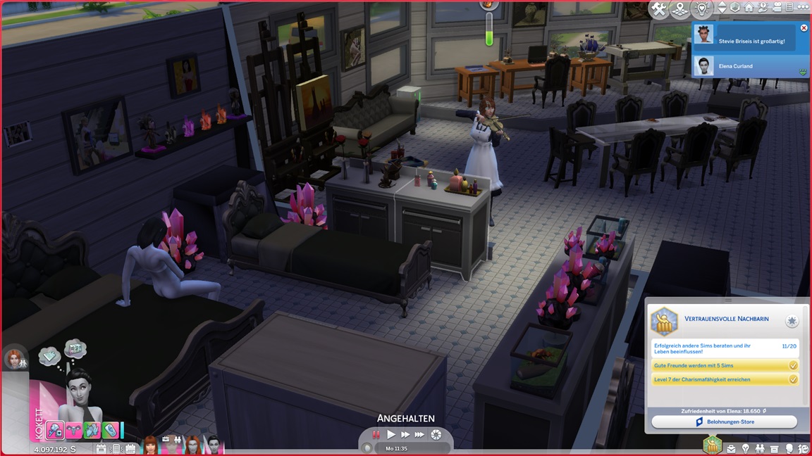 Das bekannte Phänomen bei höherstufigen Sims: Bestrebungen können aufgrund der Vorarbeit recht fix erledigt werden, und Elena besaß bereits eine maximierte Charismafertigkeit sowie ausreichend Freunde. Sie lässt Beratung folgen.