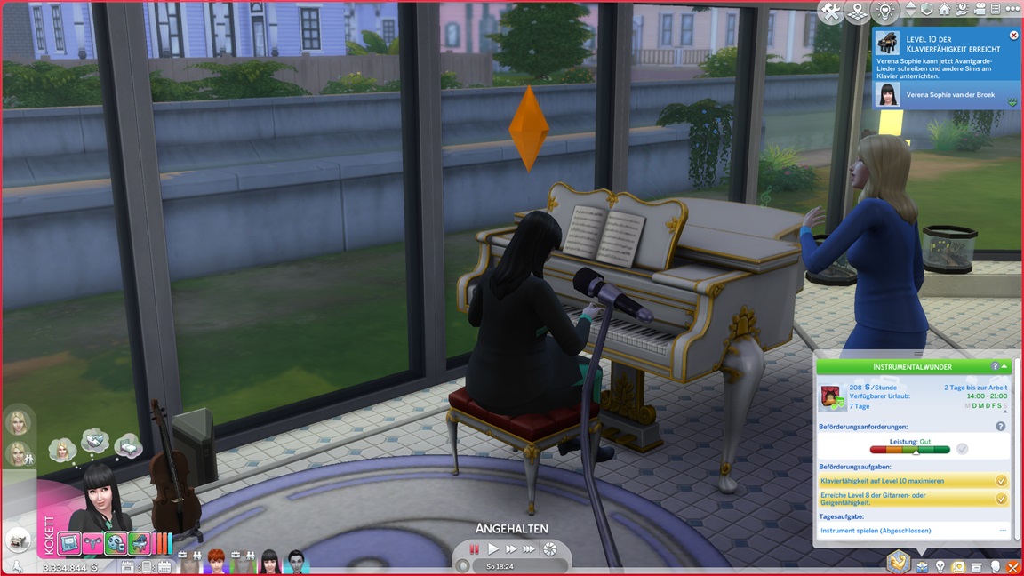 Sie erreichen Gold und landen von selbst erneut in der Kiste. Nadine stellt fest, dass sie Geige mag. Verena maximierte bereits sämtliche Instrumente, musiziert aber für den Berufsfortschritt.