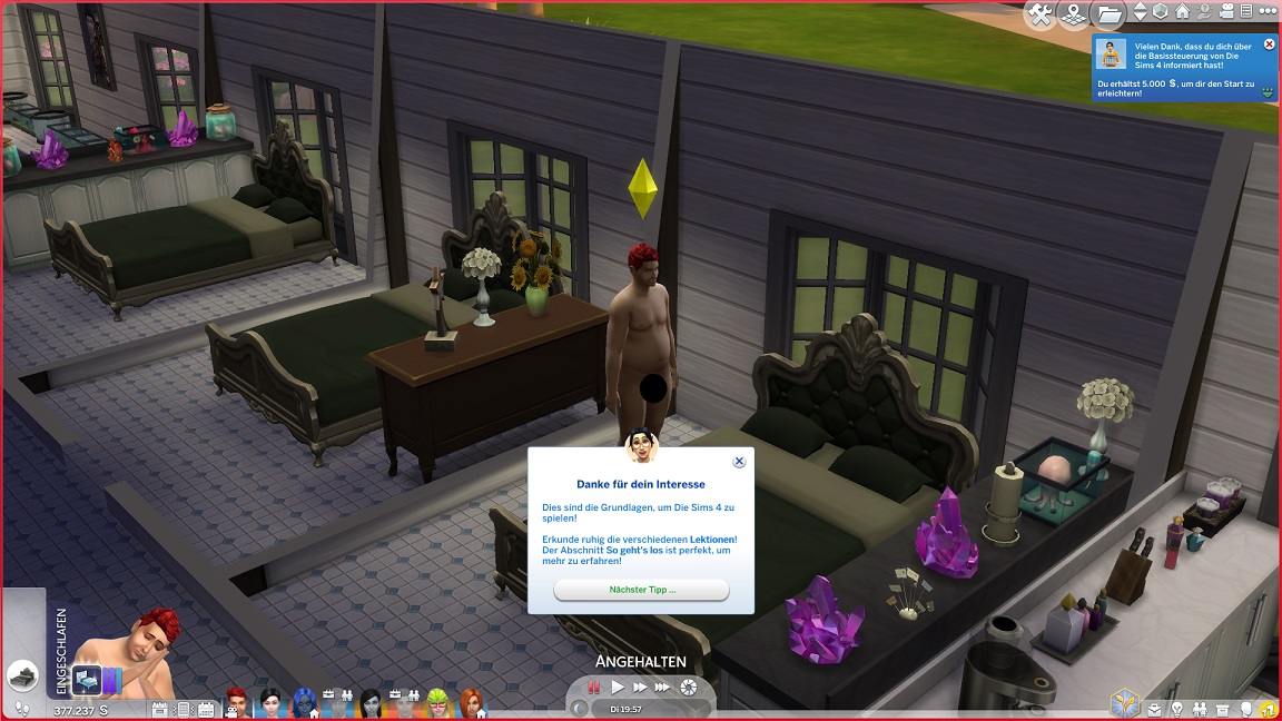 Mit der neuen Session wartet ein Update, und da ich in der Hoffnung auf Gratis-Content einmal den Live-Modus aktiviere, begrüßt mich die Sims-Variante von Clippy mit ein paar einfachen Tipps... und schenkt der Mannschaft dafür 5.000 Dollar.