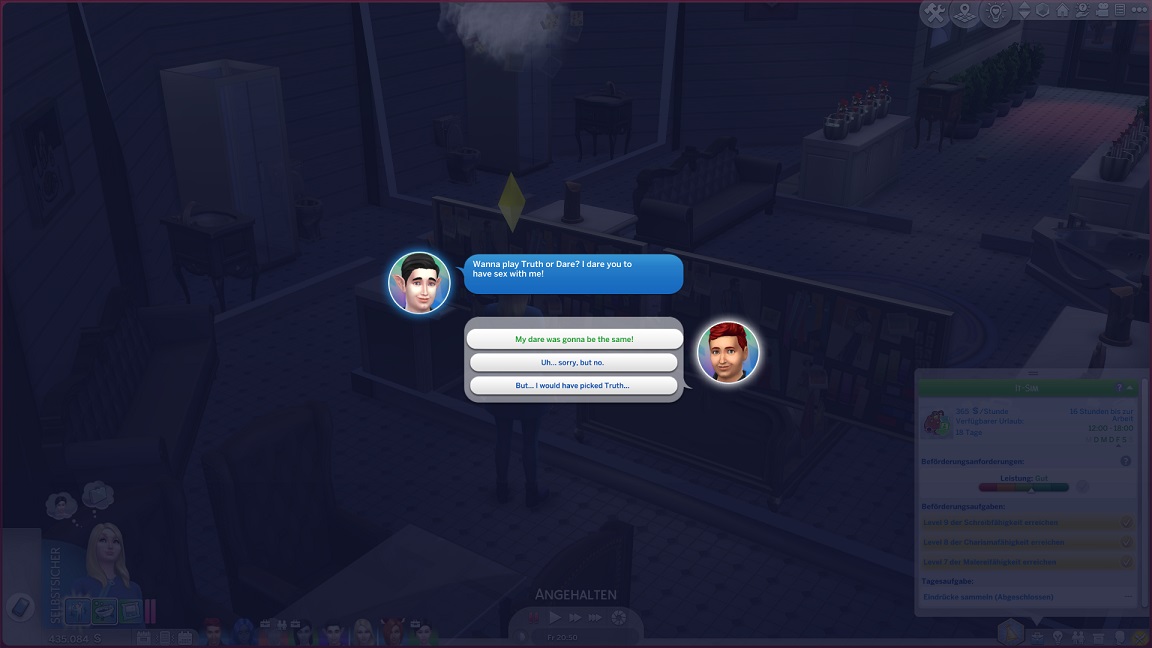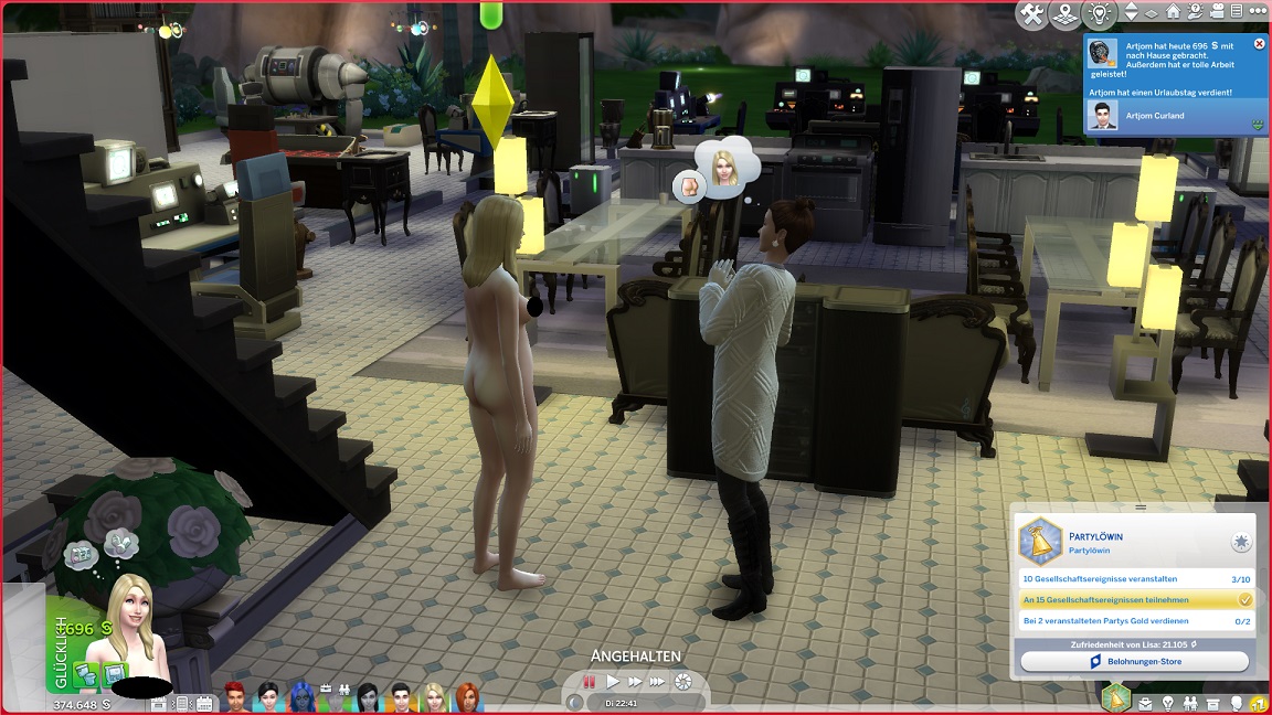 Artjom möchte seiner Tochter das Heimkino präsentieren und scheitert daran. Ich bringe mehr Distanz zwischen Türen und Treppen, was die Spielstationen verschiebt,...