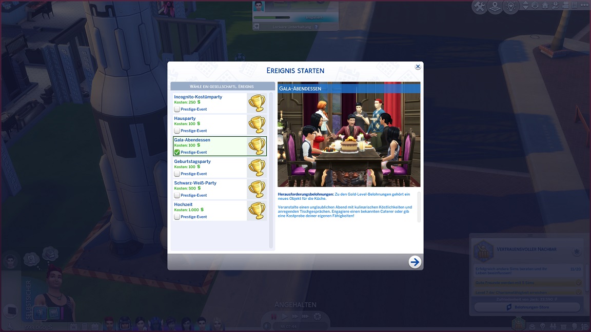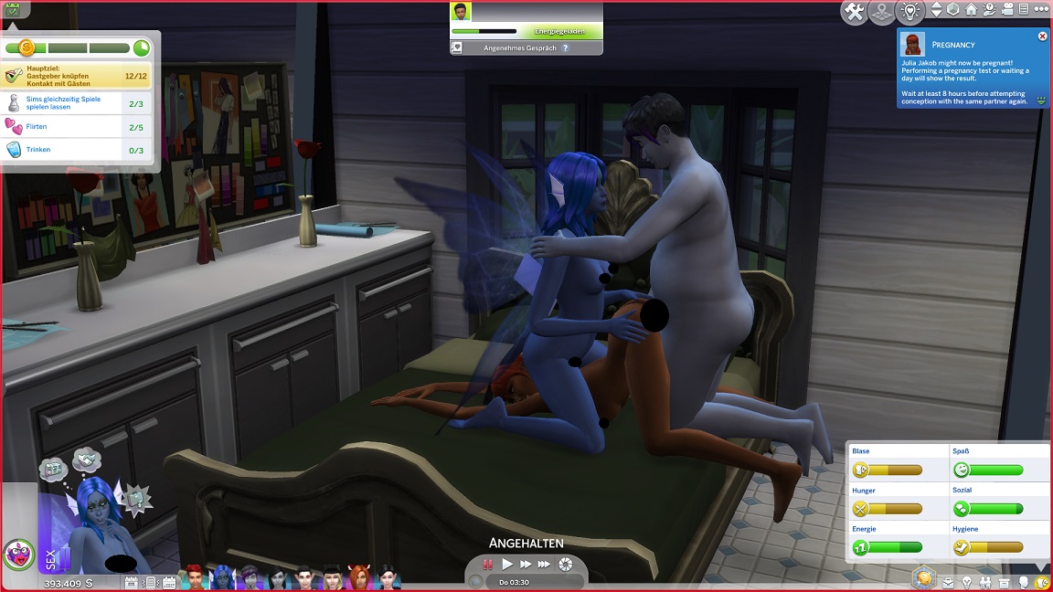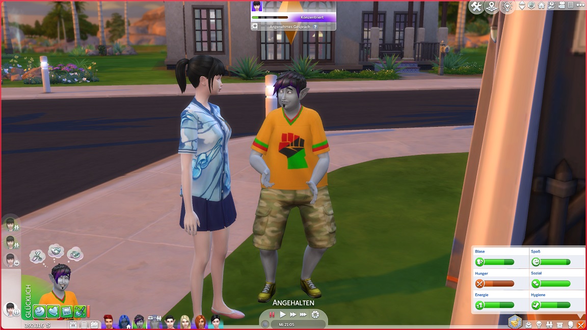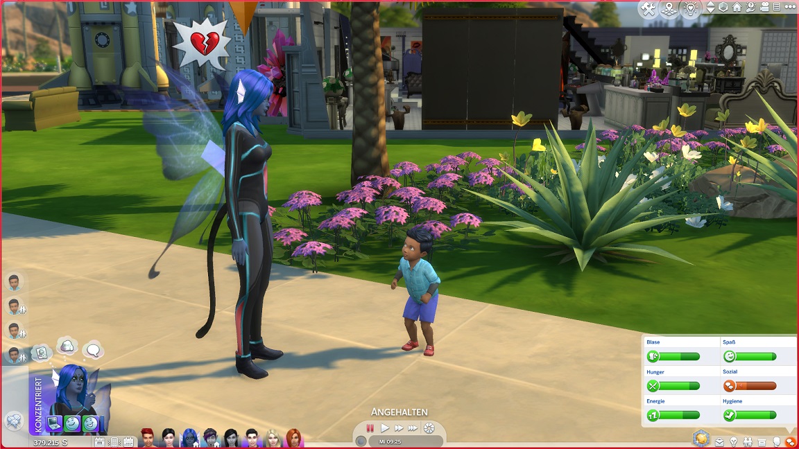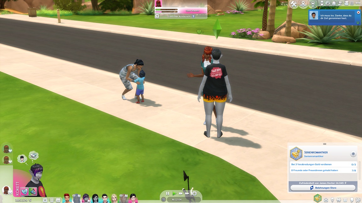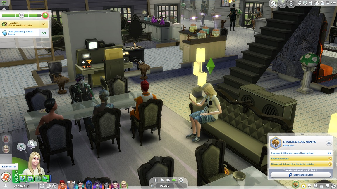 Ich setze noch eine andere Idee um: Das Elfenpaar adoptiert Adinas letztes Event-Baby. Das verschafft dem Haushalt wieder einen Platz und lässt mich darauf hoffen, dass über das Kind vielleicht auch die neuen Eltern auf bekannter Spielfläche erscheinen.