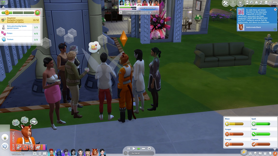 Die Gäste vergnügen sich auch draußen - und pfeifen vollends auf den Wunsch, sich doch zu den Schachbrettern zu begeben. Stattdessen brechen bei Andromeda Ängste aus.