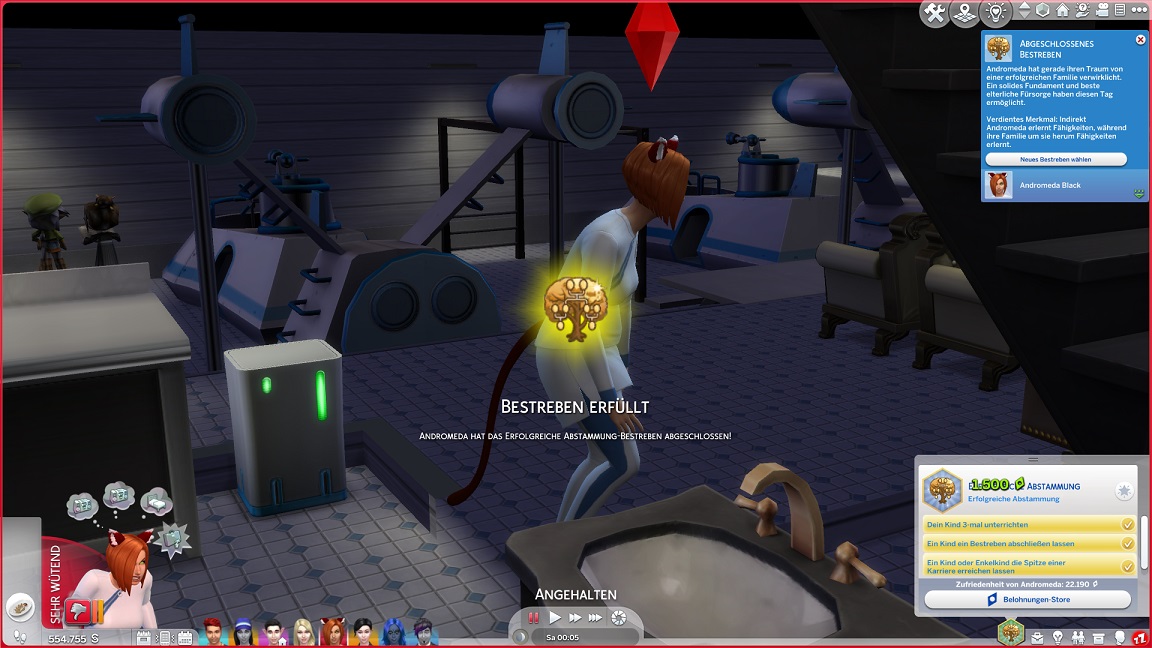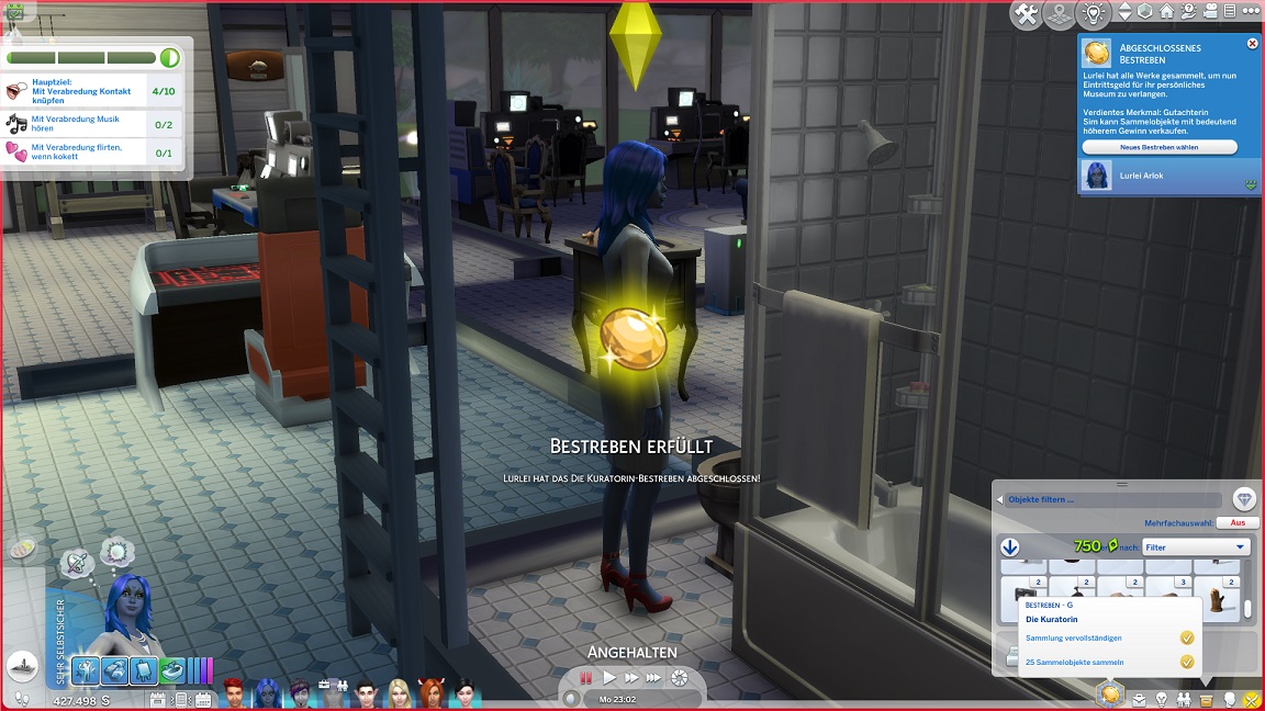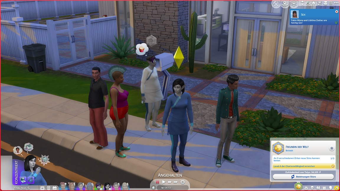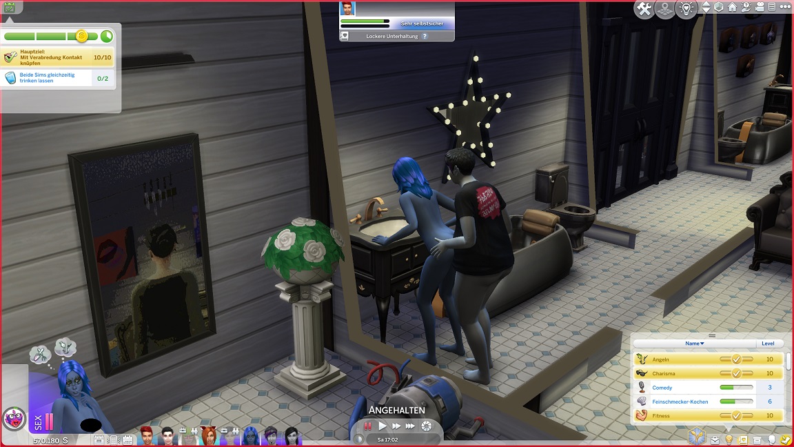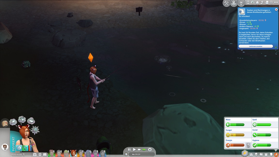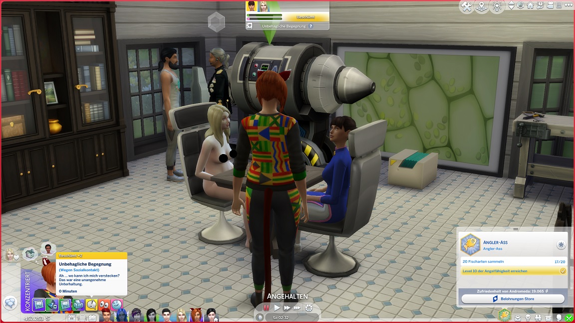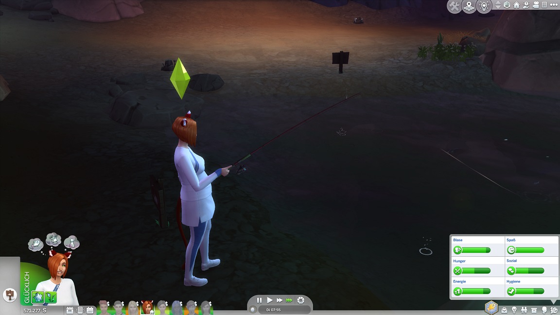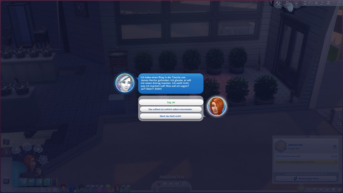 Hinsichtlich des Angelns verrät mit eine Recherche, dass ich einen Umweg nehmen muss: Es bedarf eines Sims mit Geschick 10, um einen verborgenen Ort freizuschalten... und das fällt nicht leicht, denn Andromeda hasst Geschick. Dafür schrieb ihr Mizuko ein Handgeber, auf dass es nun besser läuft.
