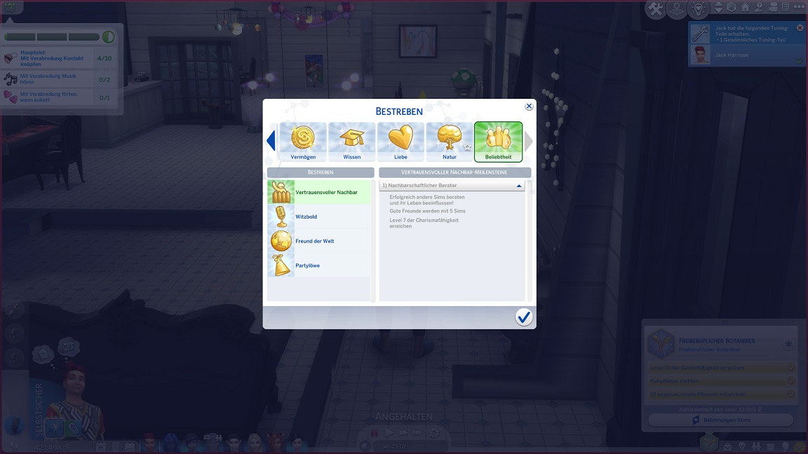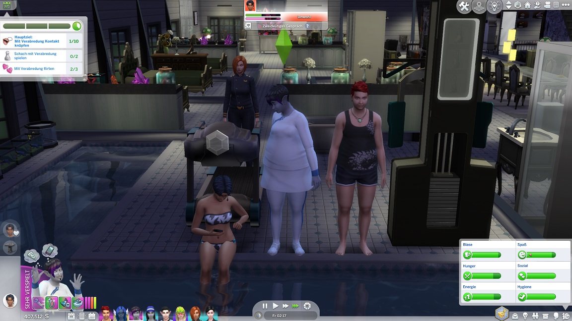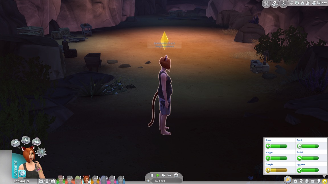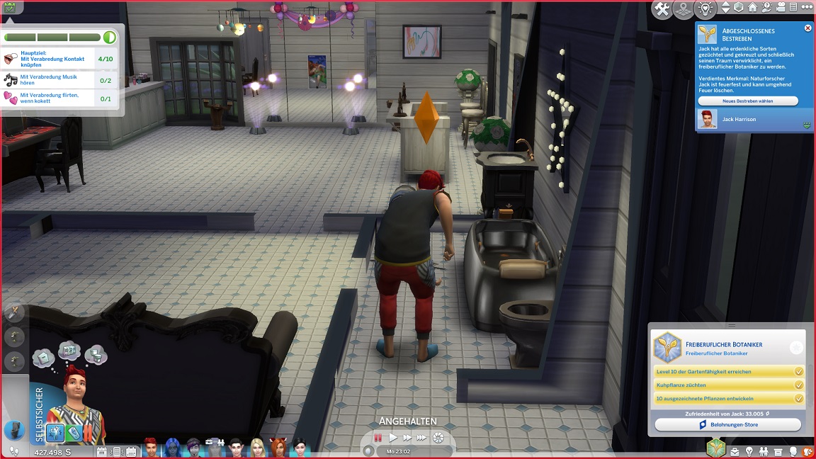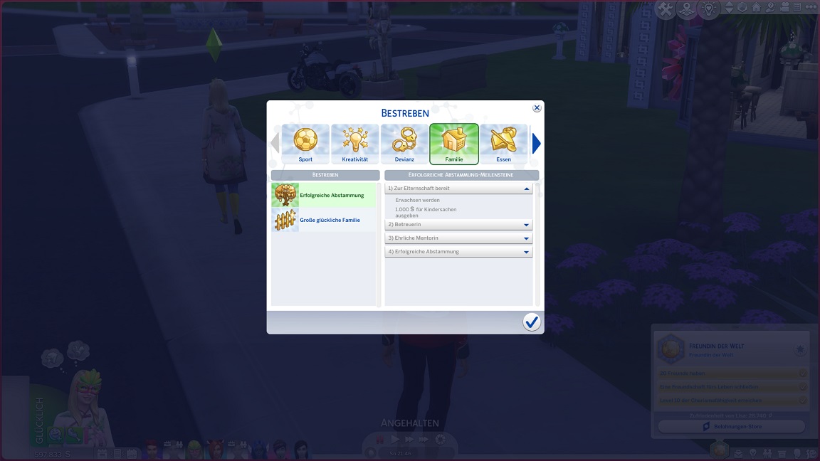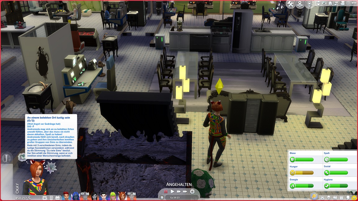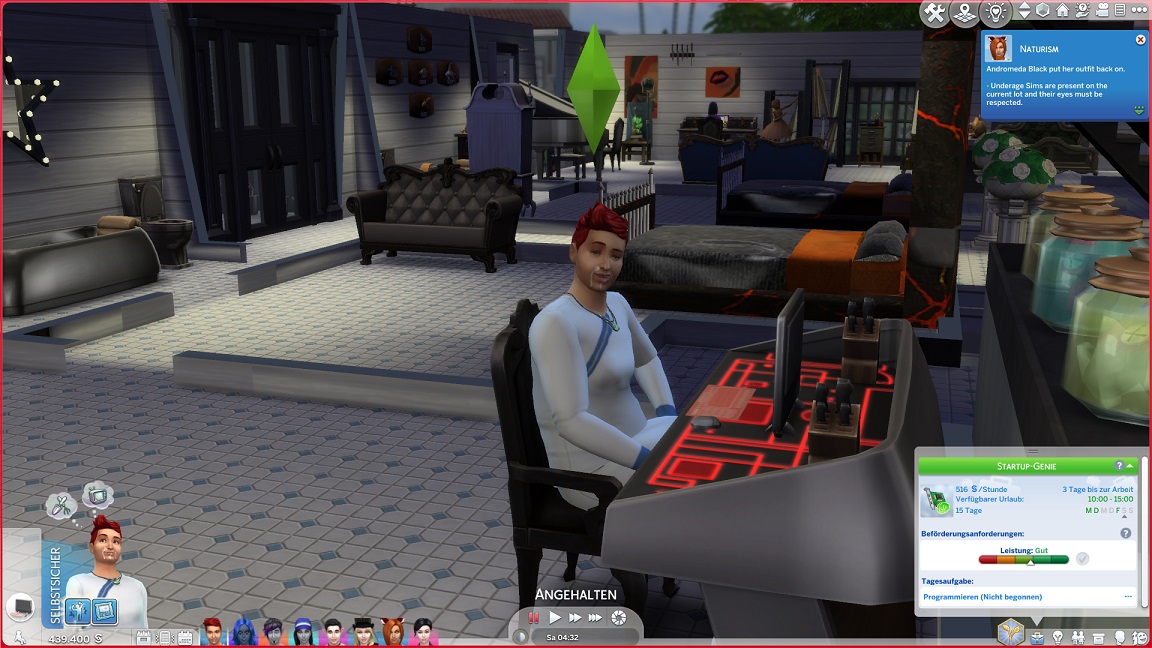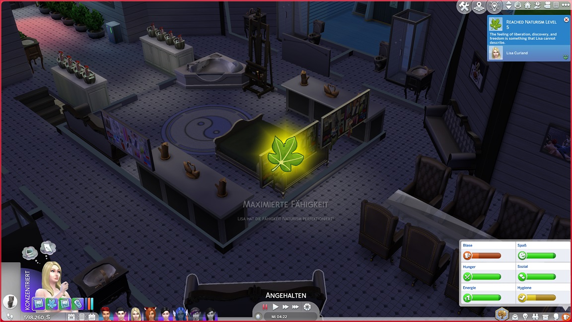 Hinsichtlich des Angelns verrät mit eine Recherche, dass ich einen Umweg nehmen muss: Es bedarf eines Sims mit Geschick 10, um einen verborgenen Ort freizuschalten... und das fällt nicht leicht, denn Andromeda hasst Geschick. Dafür schrieb ihr Mizuko ein Handgeber, auf dass es nun besser läuft.