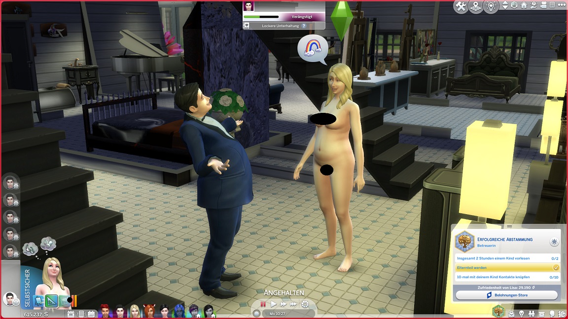 Lisa muss für ihre Aufgabe zehnmal mit ihrem Kind interagieren. Dies lässt sich leicht herunterballern, zumal bei Artjom die Angest vor der Dunkelheit einsetzt.