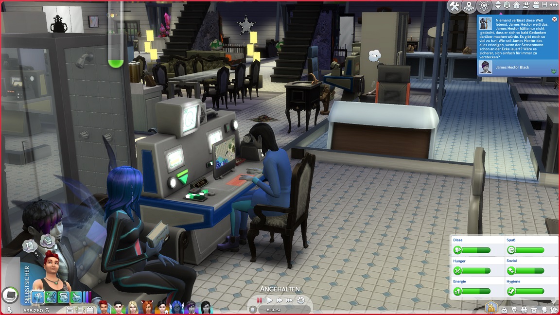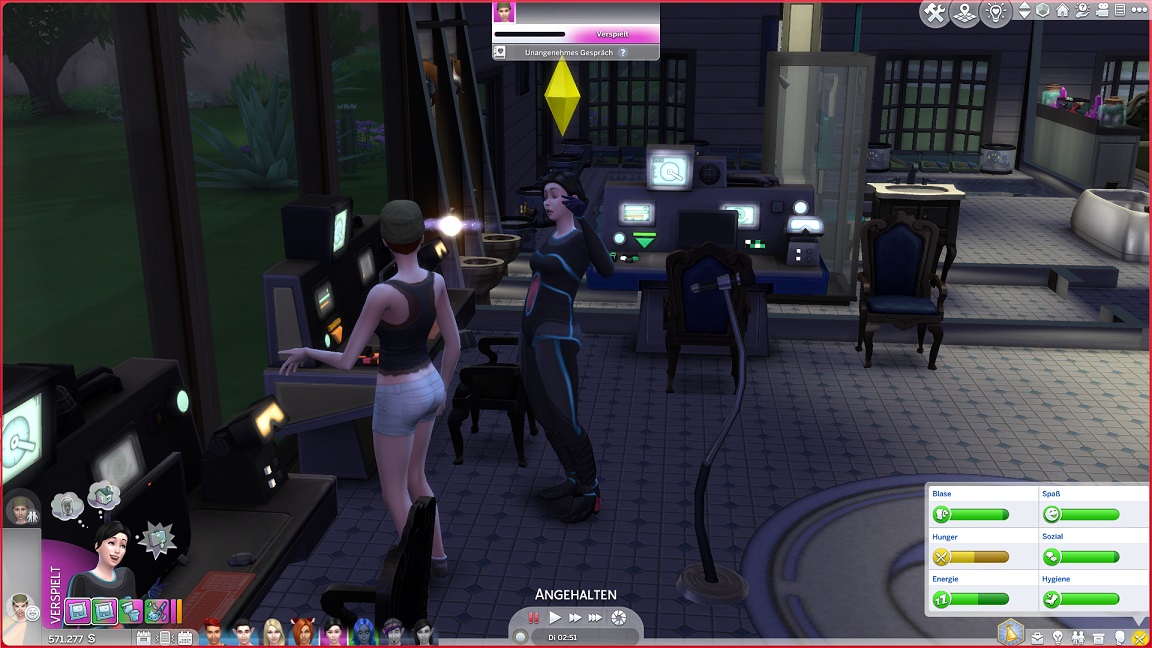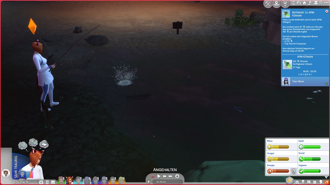 Andromeda geht angeln, ohne die Liste weiter zu füllen. Telys kehrt mit einer Beförderung von der Arbeit zurück. (Der Top Secret-Computer bleibt von den Werten her hinter dem üblichen zurück.)