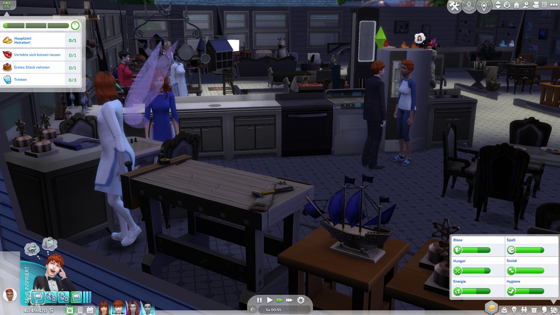 Da beschließt Andrew, seine Verlobte (und damit Gattin Nummer 4) zu heiraten, und lädt ausschließlich seine Gattinnen ein. (Palita weilte noch aufgrund einer Kennenlern- und Schach-Session mit Marcian vor Ort, dieser klemmt sich hinter dem Brett ein.) Celia heiratet in Straßenklamotten.