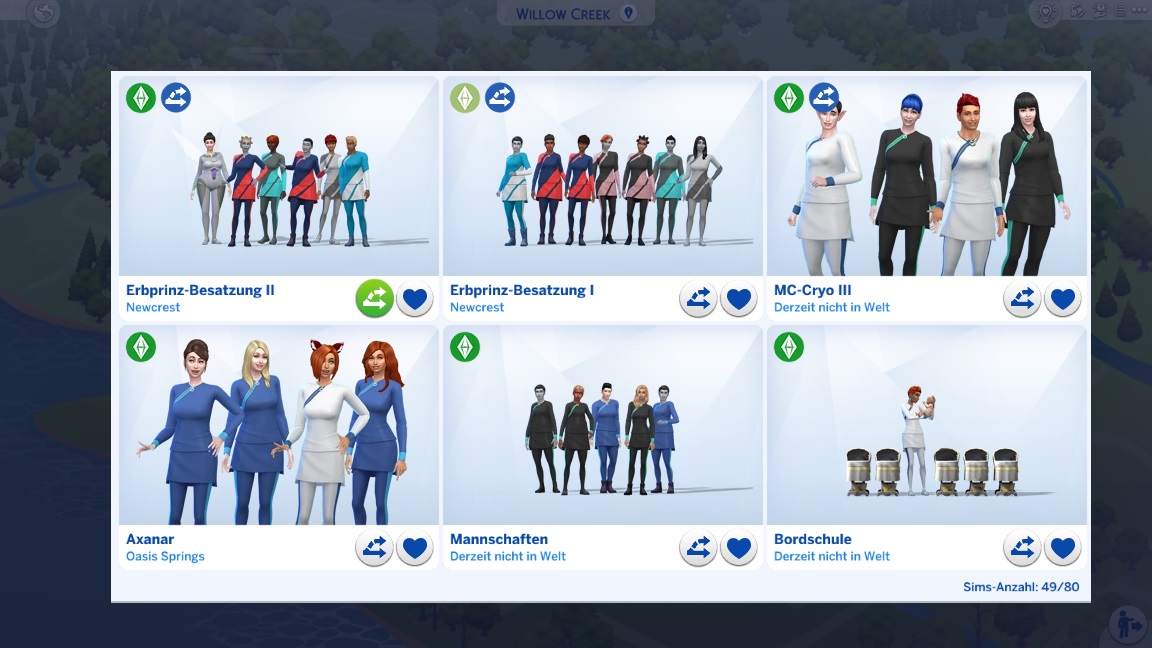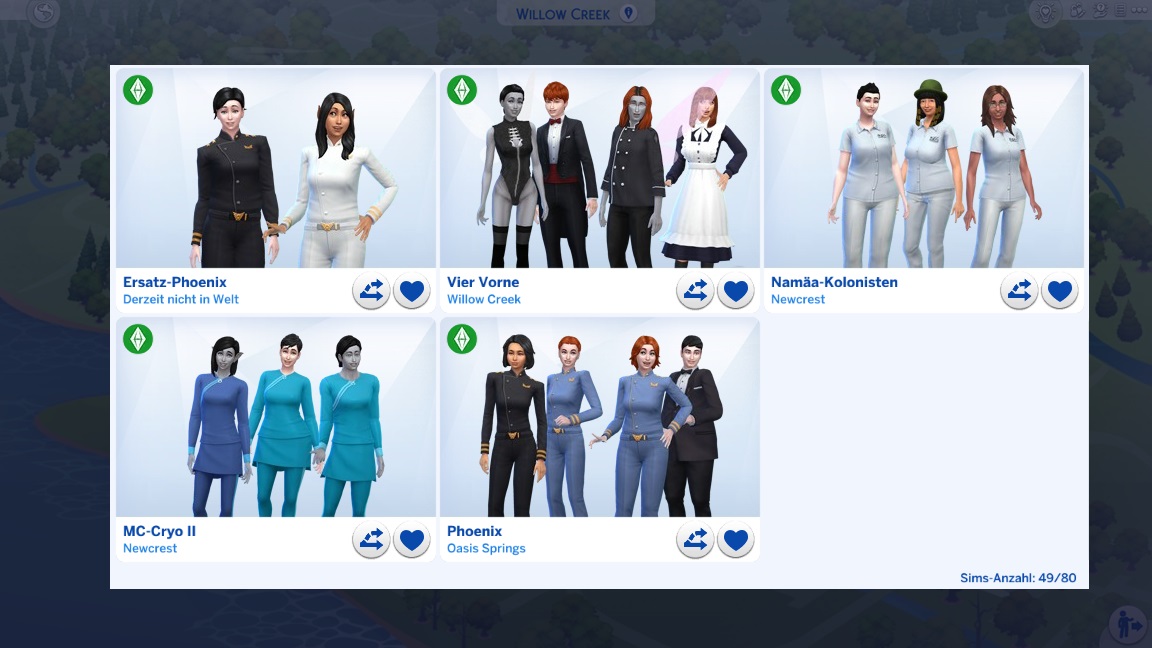 Seit der letzten Episode stieg die Zahl der definierten Charaktere wieder um sieben an: Maja Freeman kehrte in den Cast zurück, die Geschwister Marcian und Carolin Curland wählten unterschiedliche Lebenswege, was auch für Galina Stone gilt. Deren Geschwister Milena und Nika Stone befinden sich noch im Säuglingsstatus, was auch für Lisas Eventkind Mira zutrifft. Anatu begann die Episode als Säugling und wuchs heran, wobei sie zunächst dem Vier Vorne die Treue hielt und dann weiterzog.