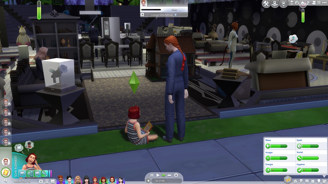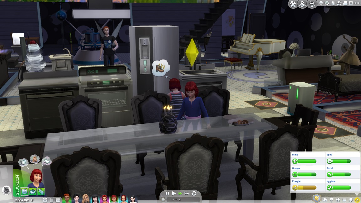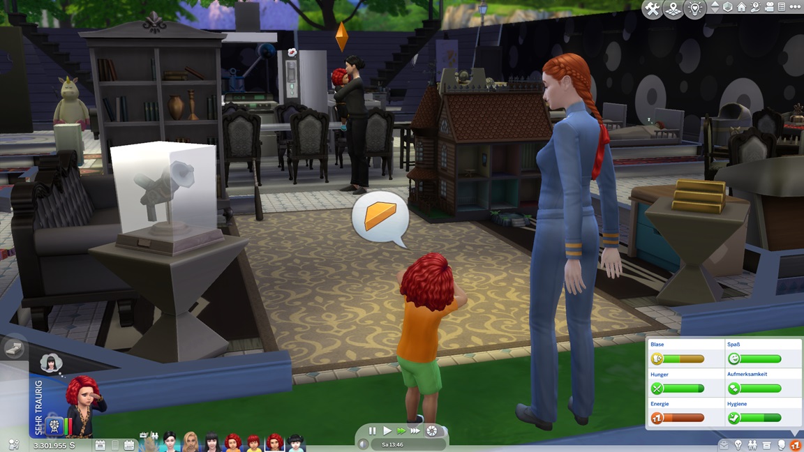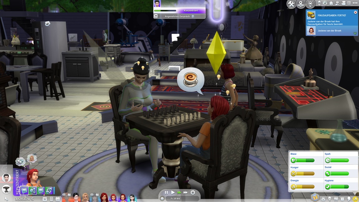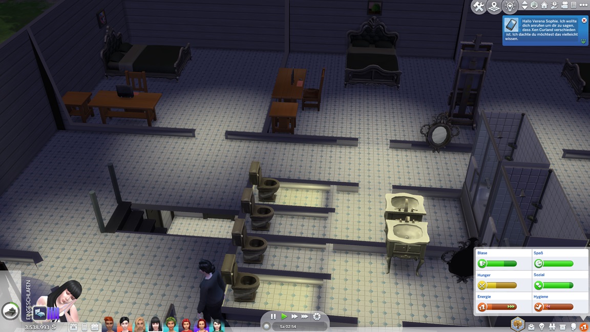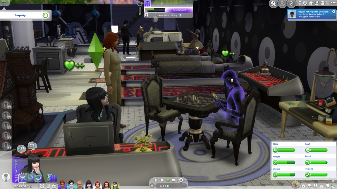 Nachdem Celia die Geräte des unteren Allgemeinbereichs aufrüstete (der Rest bleibt absichtlich für den Moment offen), klemmt sie sich hinter die Werkbank und stattet die Crewkabinen mit Schreibtischen aus, die anschließend noch um Stühle ergänzt werden sollen. Das letzte Kind kann jubeln.