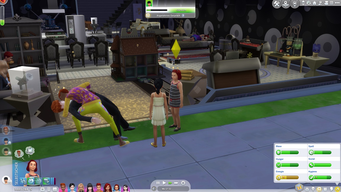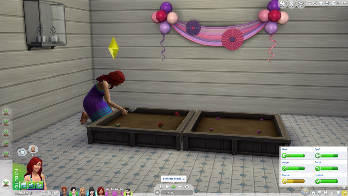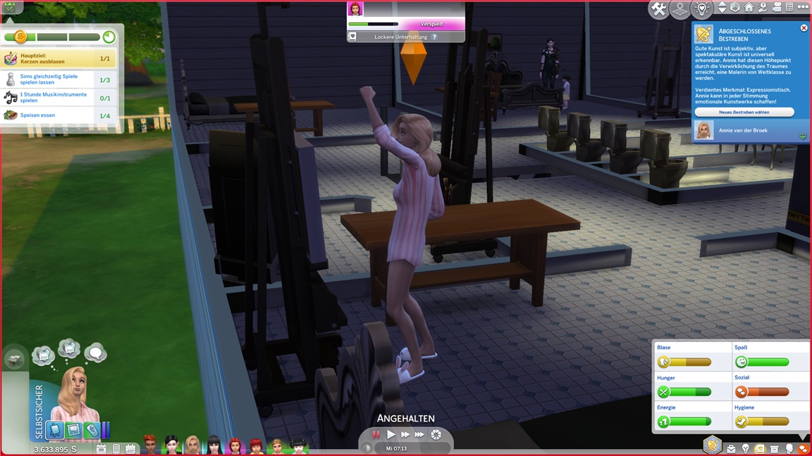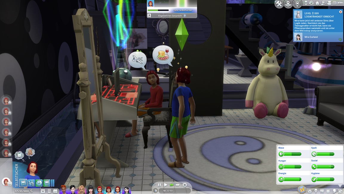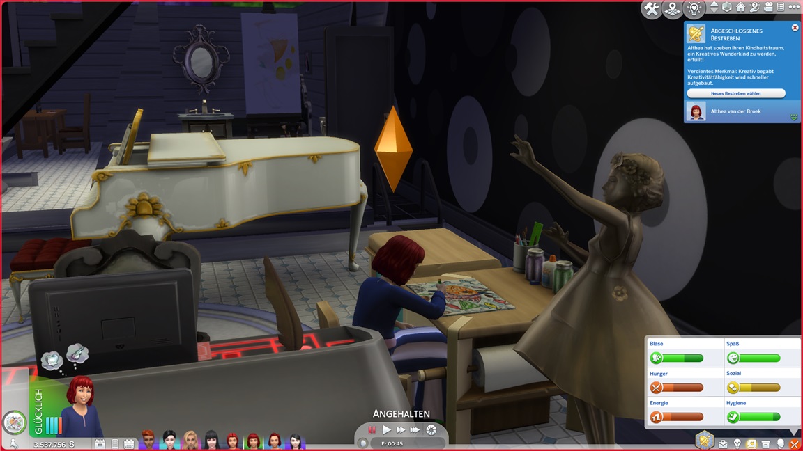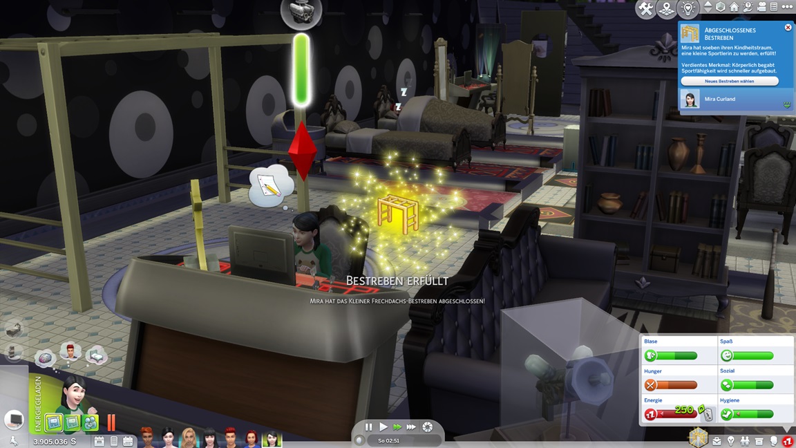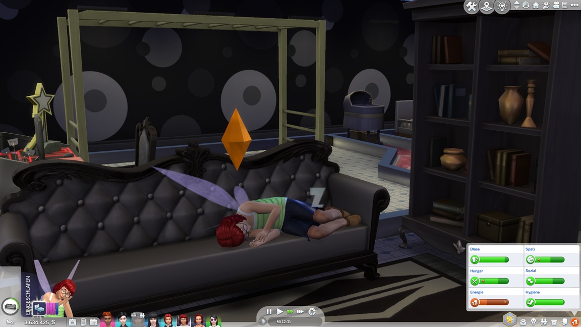 Nachdem Celia die Geräte des unteren Allgemeinbereichs aufrüstete (der Rest bleibt absichtlich für den Moment offen), klemmt sie sich hinter die Werkbank und stattet die Crewkabinen mit Schreibtischen aus, die anschließend noch um Stühle ergänzt werden sollen. Das letzte Kind kann jubeln.