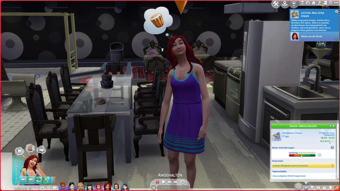 Althea stellt fest, dass sie Geige mag. Jaslene bemüht sich klassisch um den Erwachsenenfreund in Form der Gattin ihres Vaters.