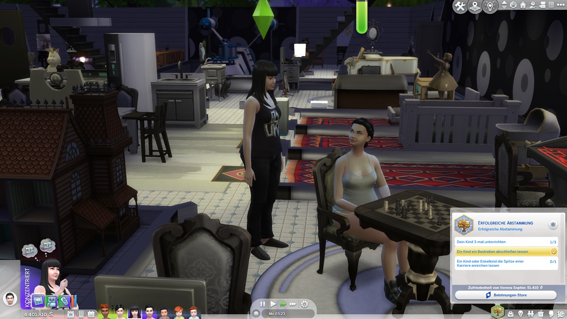 Nachdem sie diesen Wert ausreichend anhob und ihr die Konsole (wie üblich) die Raketenschiff-Aufgaben abnahm, benötigt sie die fünf Aufwertungen/Reparaturen und auf Maximum gebrachte Logik. Sie fährt bei den Lehrertoiletten fort.