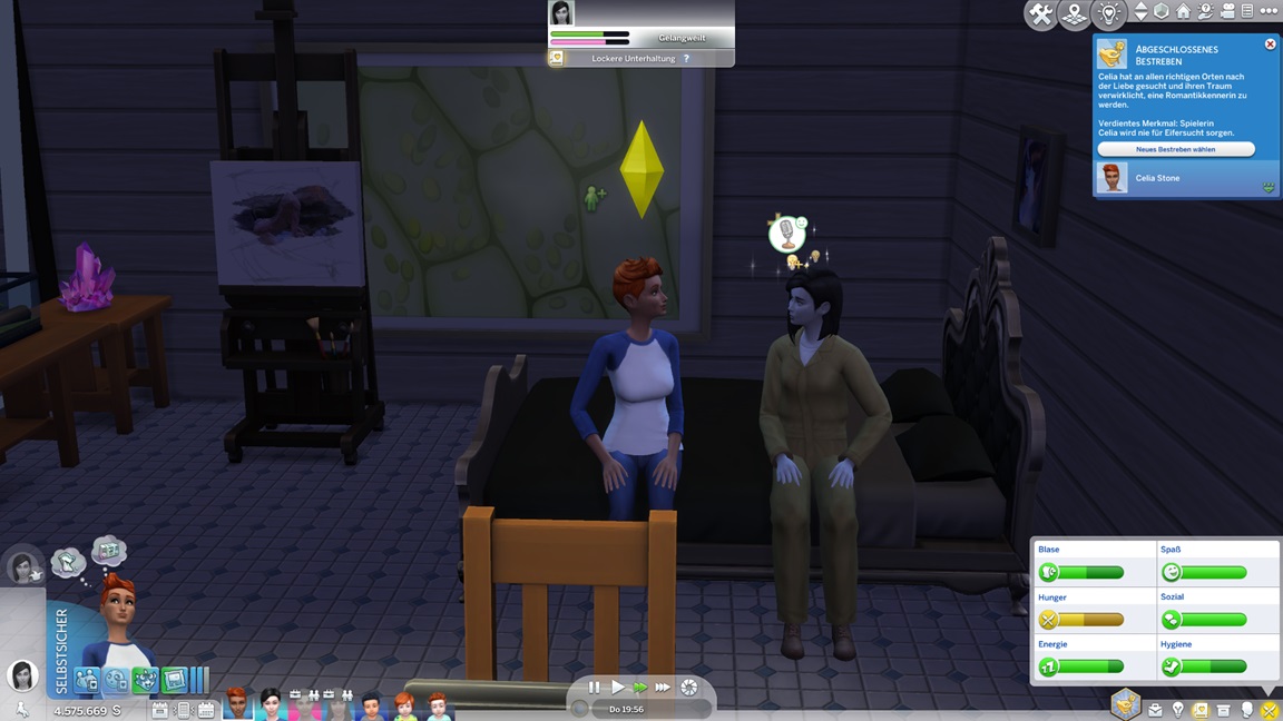 Sie wechselt, da der Karriereabschluss eindeutig noch dauert, und muss sich nun mit zwei weiteren ihrer Kindern anfreunden sowie ein Kind heiraten sehen. Celia lädt Andromeda zu dem hoffentlich ersten der drei benötigten Dates (auf Gold.)