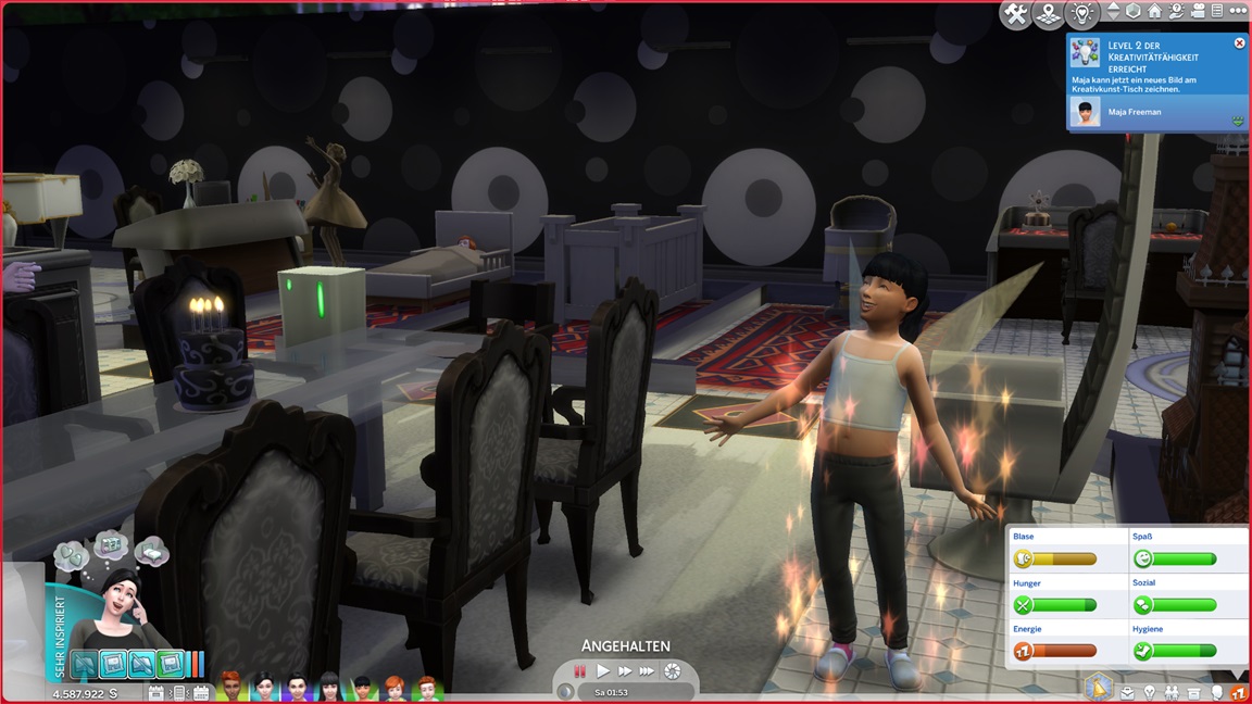 ... wieder ohne Geburtstagsfeier der Kuchen naht. Maja benötigt keine Würfel, da sie bloß ihr "Gesellig" zurückerhält und entsprechend nach Freunden strebt. Die Flügel überraschen - und bleiben.