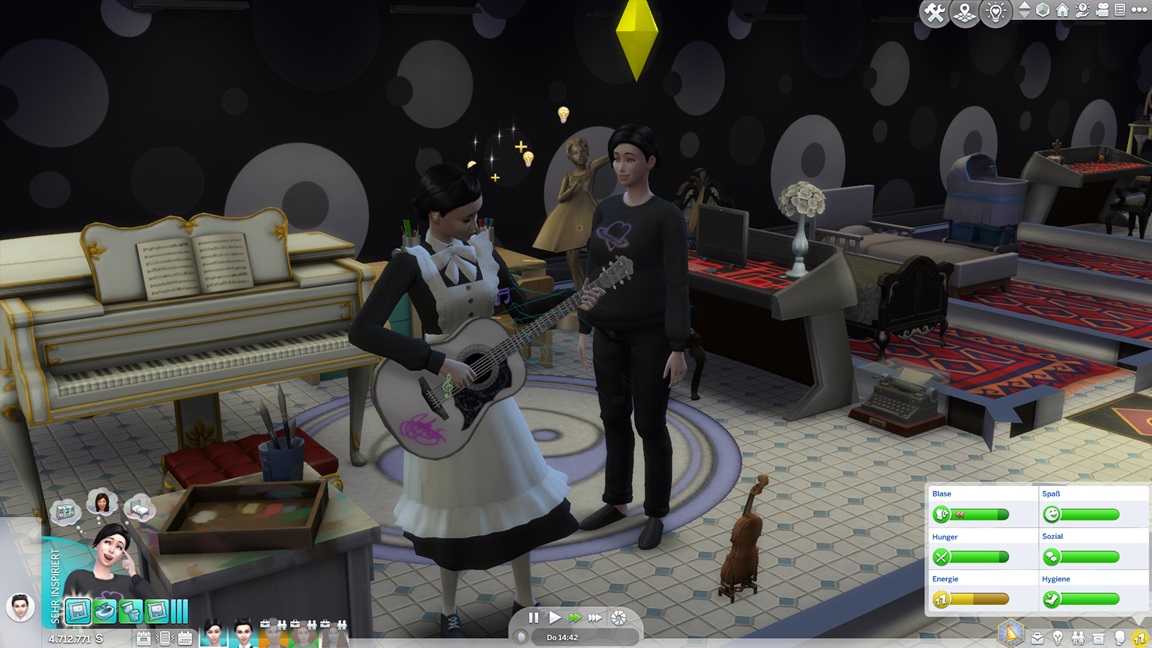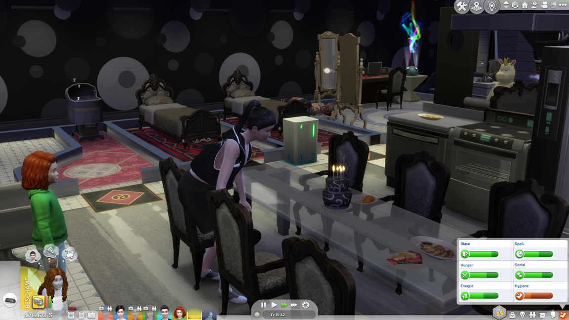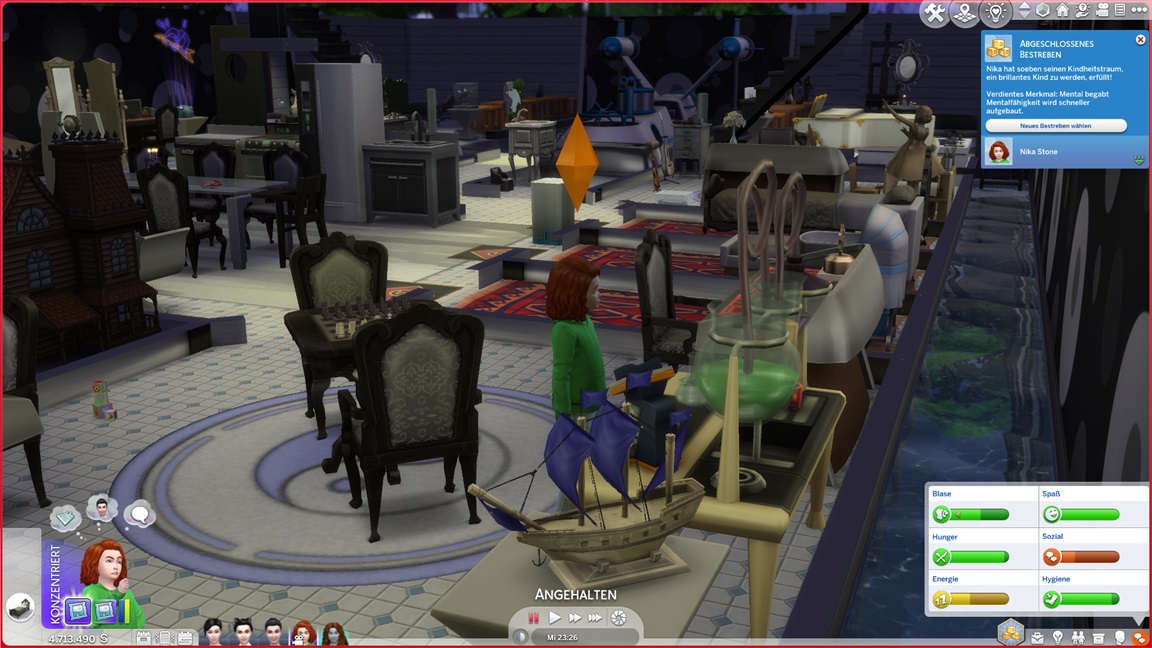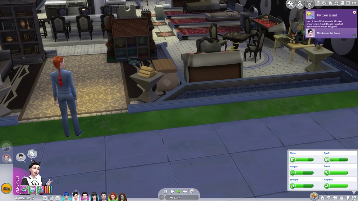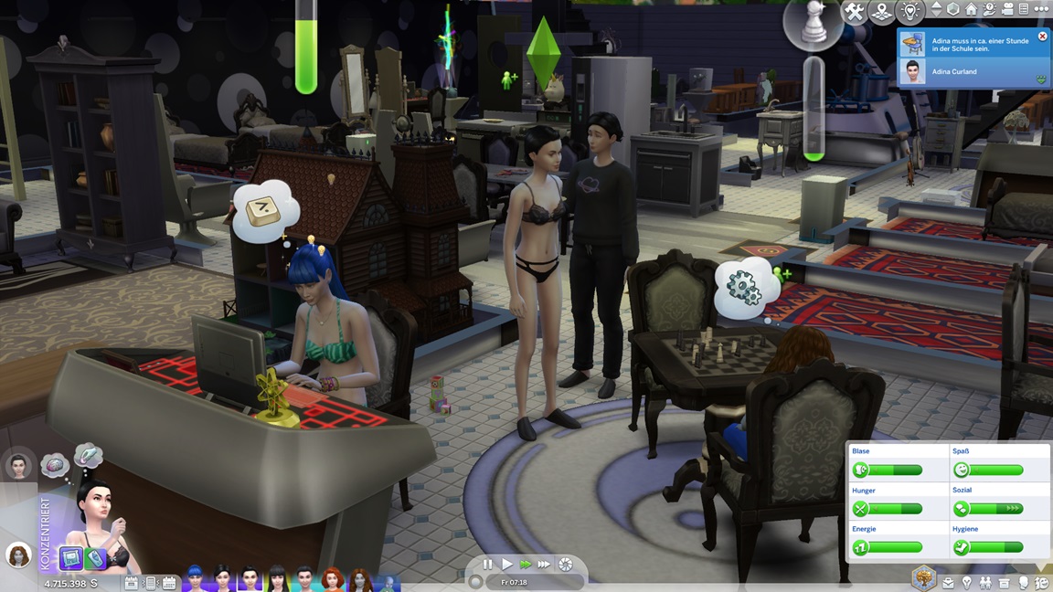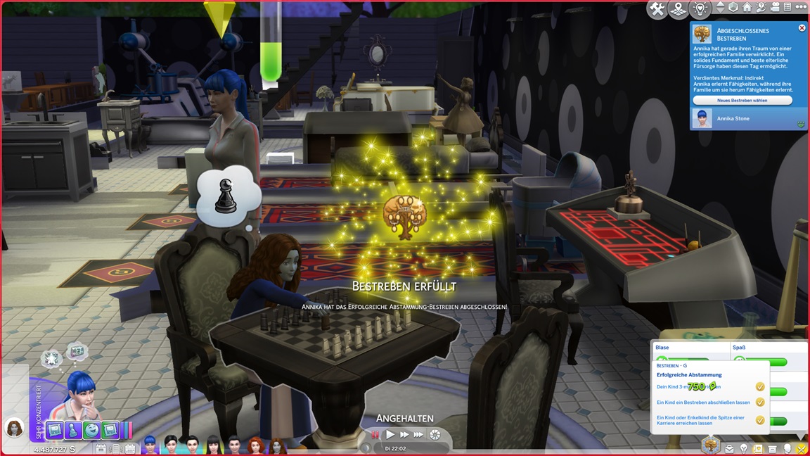 Annika stellt fest, dass sie Programmieren mag. Ich klicke mich einmal durch die Stammbäume: Jack kommt auf 11 Kinder, Lisa auf vier, Andromeda auf fünf, Telys auf sechs, Lurlei kam auf acht (von denen nur noch Annika lebt). Milena arbeitet an ihrem dritten Bestreben (sie ließ Motorik bislang außen vor), Nika am vierten.