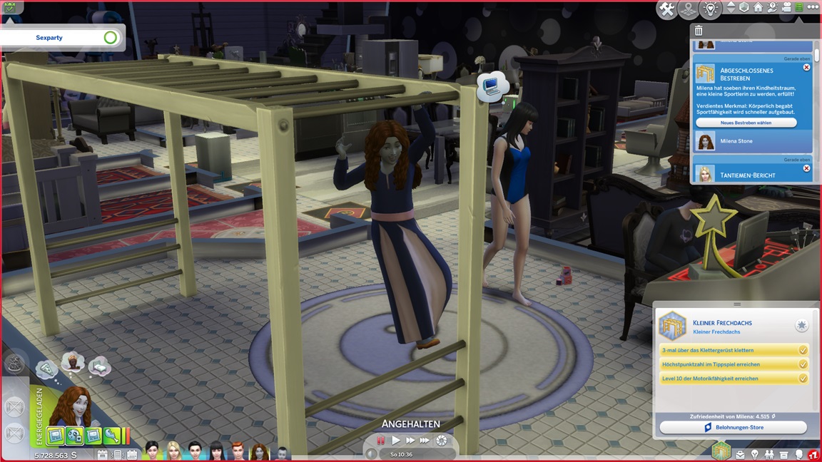 Milena stellt fest, dass sie Videospiele hasst, und steigt für den Rest der Fertigkeitenpumperei auf das Klettergerüst um.