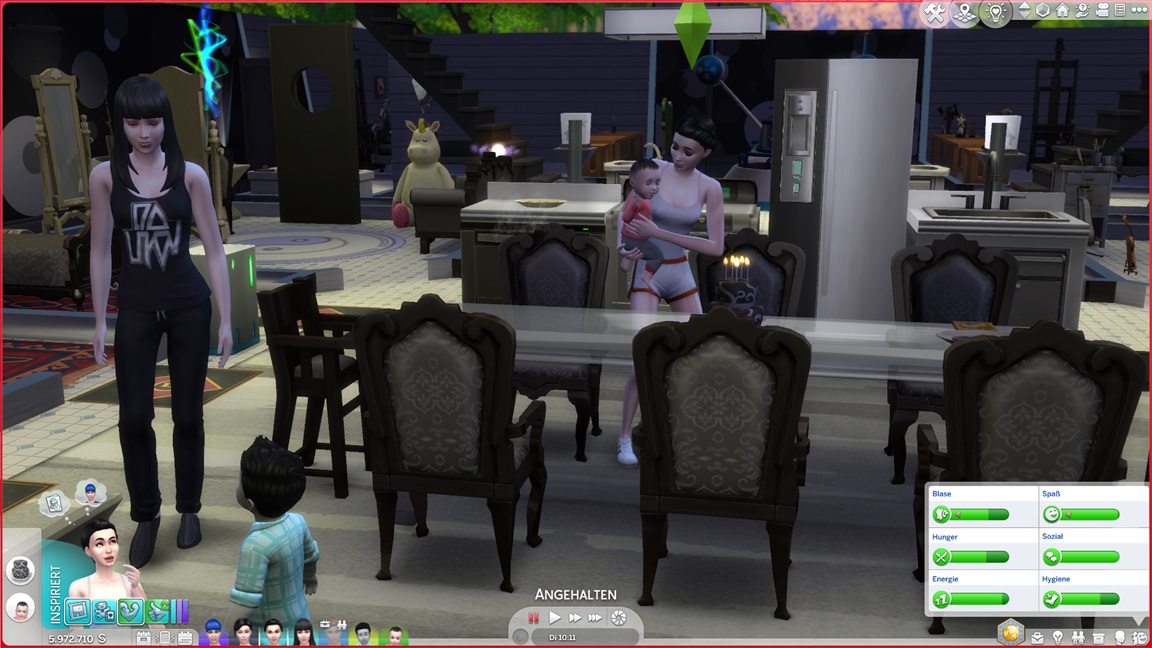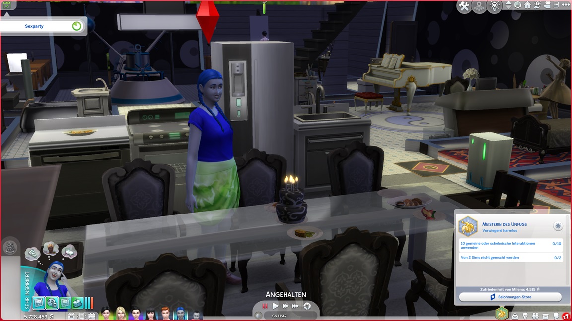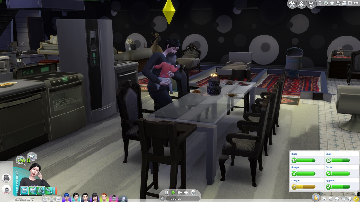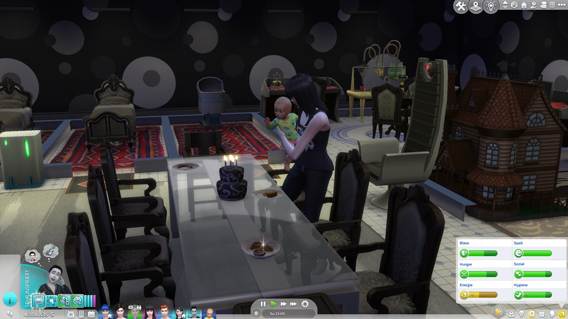 Celia steht vor der Tür und verführt Verena. Als beide Kleinkinder dringend ins Bett wollen und das Spiel mir Geschrei und Warnungen entgegenpeitscht, aber sie die Befehle zum Schlafen einfach nicht ausführen, reißt mein Geduldsfaden: Die Scheiße endet, beide vor den Kuchen, es ist eh bloß Kür.
