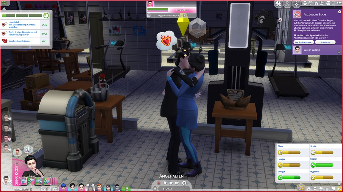 Er stellt fest, dass er Klavier mag. Mira muss an verschiedenen Orten Leute kennenlernen, Nika Gemälde im Museum betrachten, ein gemeinsamer Ausflug bietet sich an. Leider erweist es sich als so spät in der Nacht, dass Mira im Museum niemanden zum Kennenlernen antrifft, sodass sie ihren Ausflug um Bar und Fitnessstudio verlängert.