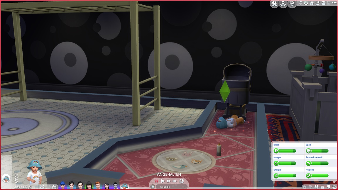 Mira stellt fest, dass man auch mit Säuglingen gemeinsam im Puppenhaus spielen kann. Nika jubelt.