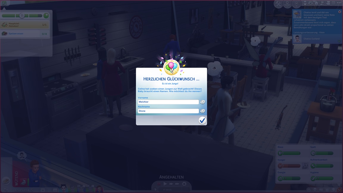 Die Meldung hängt über der Feier, deren für den Nachwuchs kleinen Kreis zum Rotieren zwingt: Celina bereitet selbst die Hochzeitstorte zu und schenkt die Getränke aus.